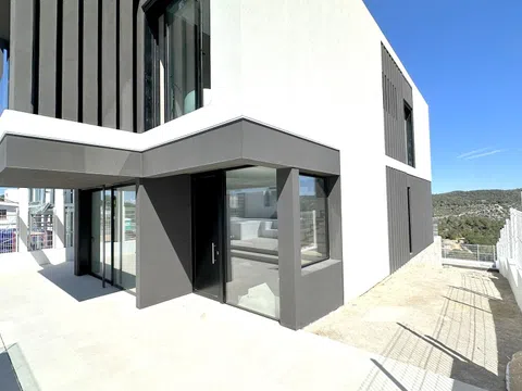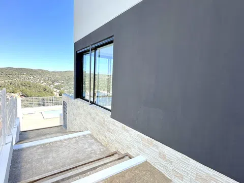 Discover an exclusive and independent residence that promises stunning views of the sea and mountains. This newly constructed home, located in a prime area, offers an idyllic living experience just a short drive from the vibrant heart of Sitges.