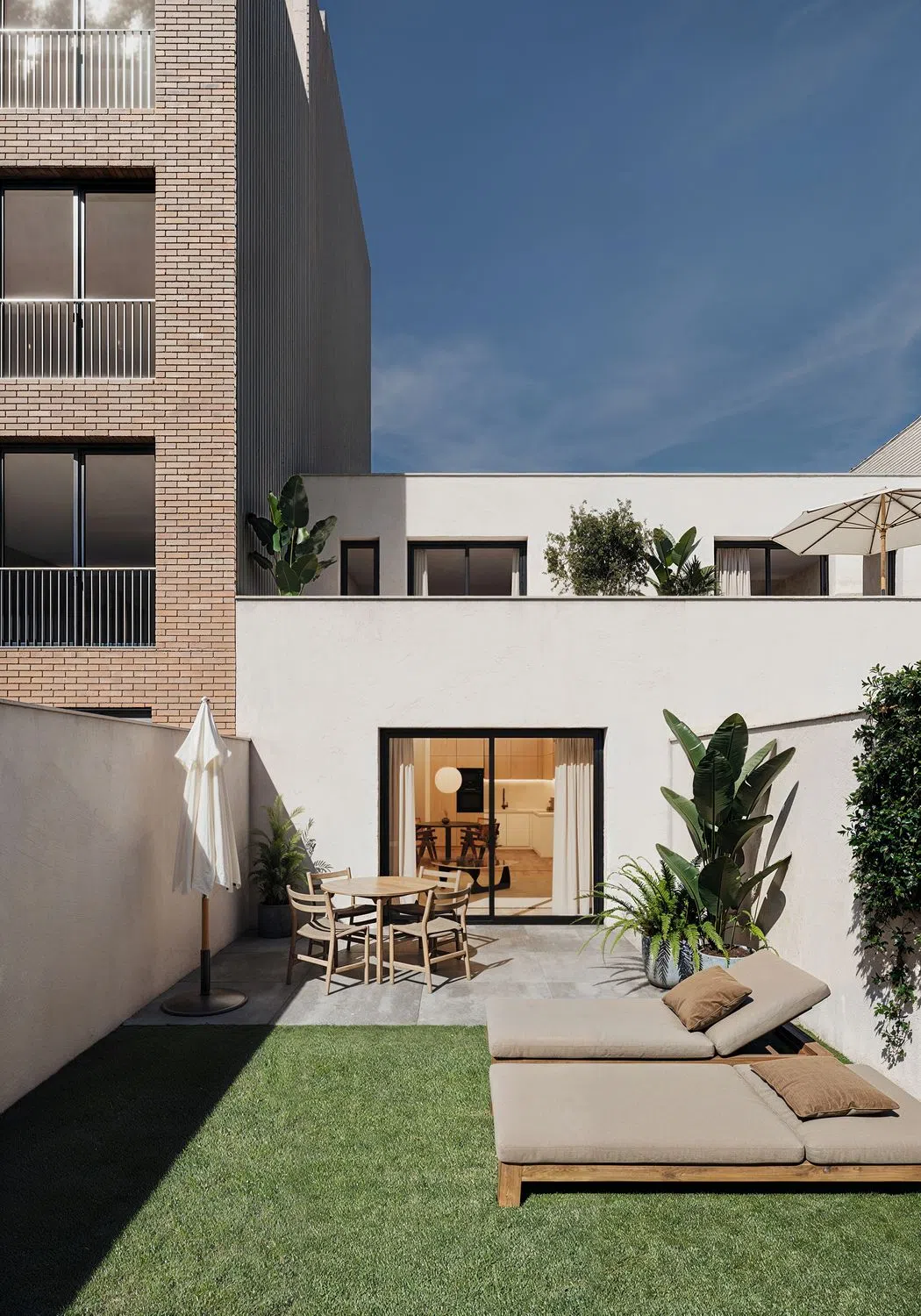 Main Features: 118.36 m² living space, 11.79 m² first-floor terrace, 29.58 m² sunny private patio, 3 bedrooms, 3 bathrooms (1 en-suite), 14.54 m² garage.