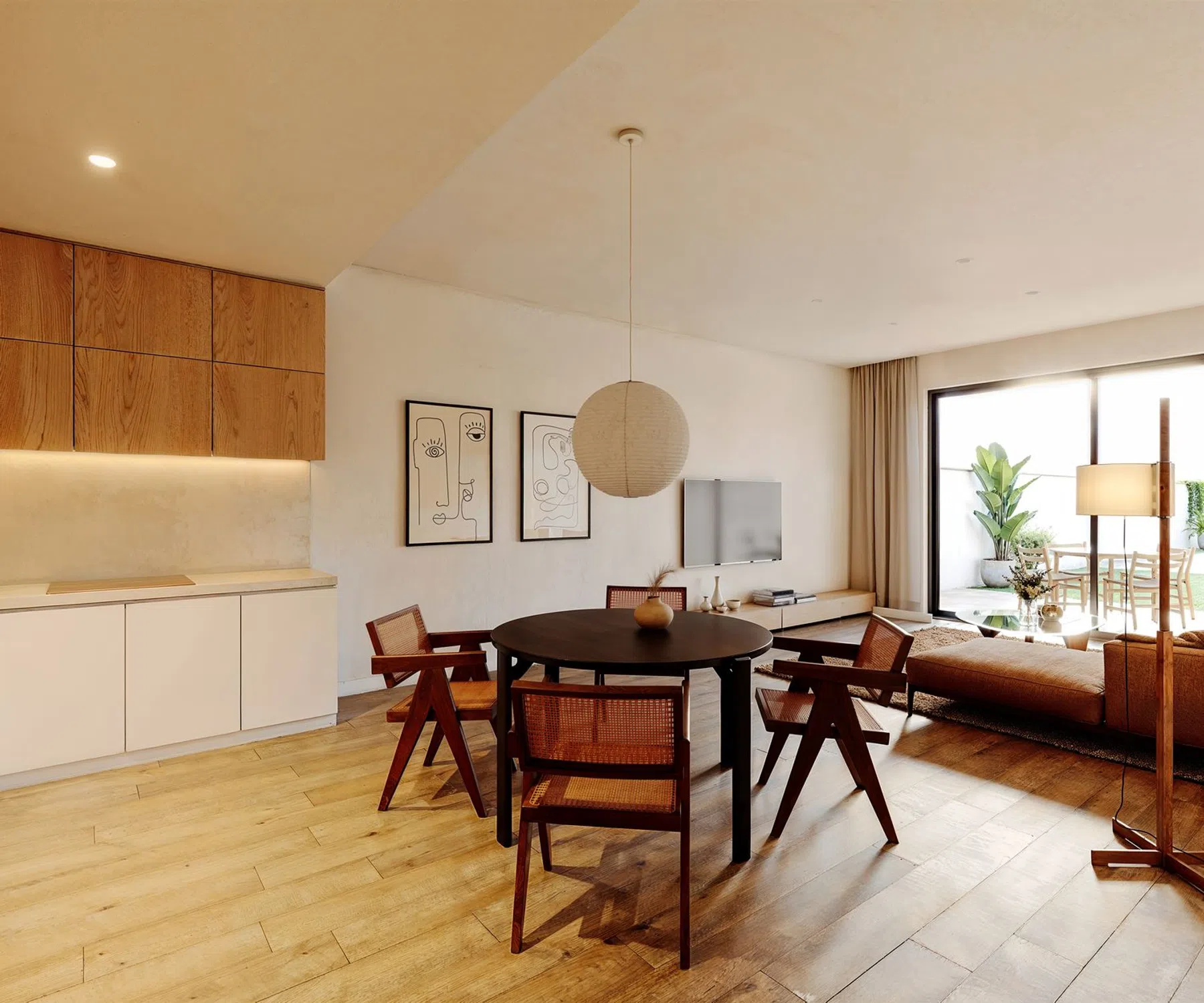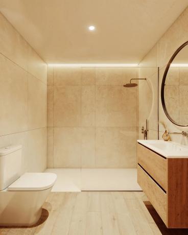 Ground Floor: Includes a 16.95 m² parking space, a guest bathroom, and a magnificent living area with a dining room that allows natural light to flow in. The integrated kitchen creates a bright, cozy, and perfectly distributed interior with a surface of 27.27 m², leading to a private patio of 29.58 m², perfect for enjoying the weather and relaxing outdoors.