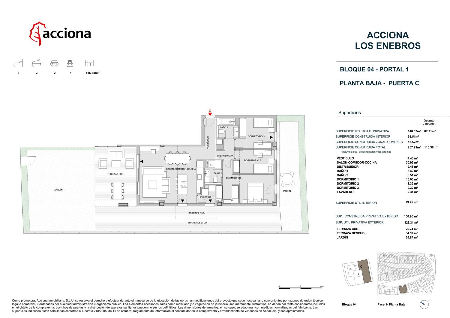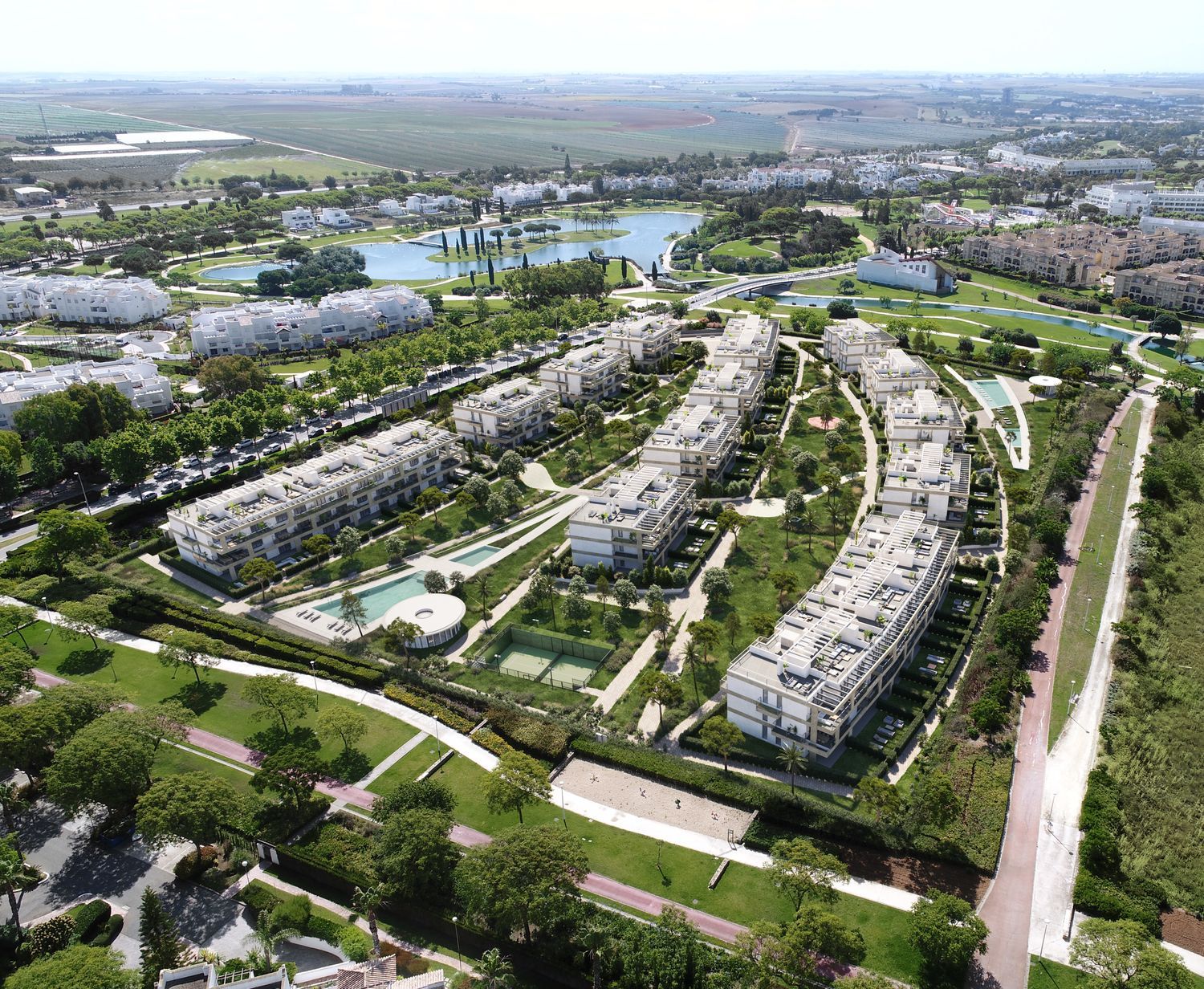 LOS ENEBROS ES UN CONJUNTO RESIDENCIAL SOSTENIBLE UBICADO EN EL PRIVILEGIADO ENTORNO DE COSTA BALLENALos Enebros es un residencial de 161 viviendas donde se conjugan amplios espacios de jardines arbolados con la intimidad en los hogares, compuesto en su mayoría por pequeños bloques de tres vecinos por planta, que aluden a hermosas villas de lujo. Las viviendas, proyectadas por Bakpak Architects, cuentan con fachadas muy estudiadas, de estilo atemporal, moderno, exclusivo y diferencial. Un conjunto residencial único por su configuración y diseño, calidades y ubicación en la zona. Distintivo de identidad propia en la urbanización de Costa Ballena. Rodeada de un entorno inigualable, a orillas del lago, con solo un lateral de la manzana donde se ubica el residencial rodado y cercano a playa.Dotadas en esta primera fase de 62 viviendas de 2 y 3 dormitorios, con amplios jardines en bajos, en su mayoría con dos plazas de garaje por vivienda y trastero.
