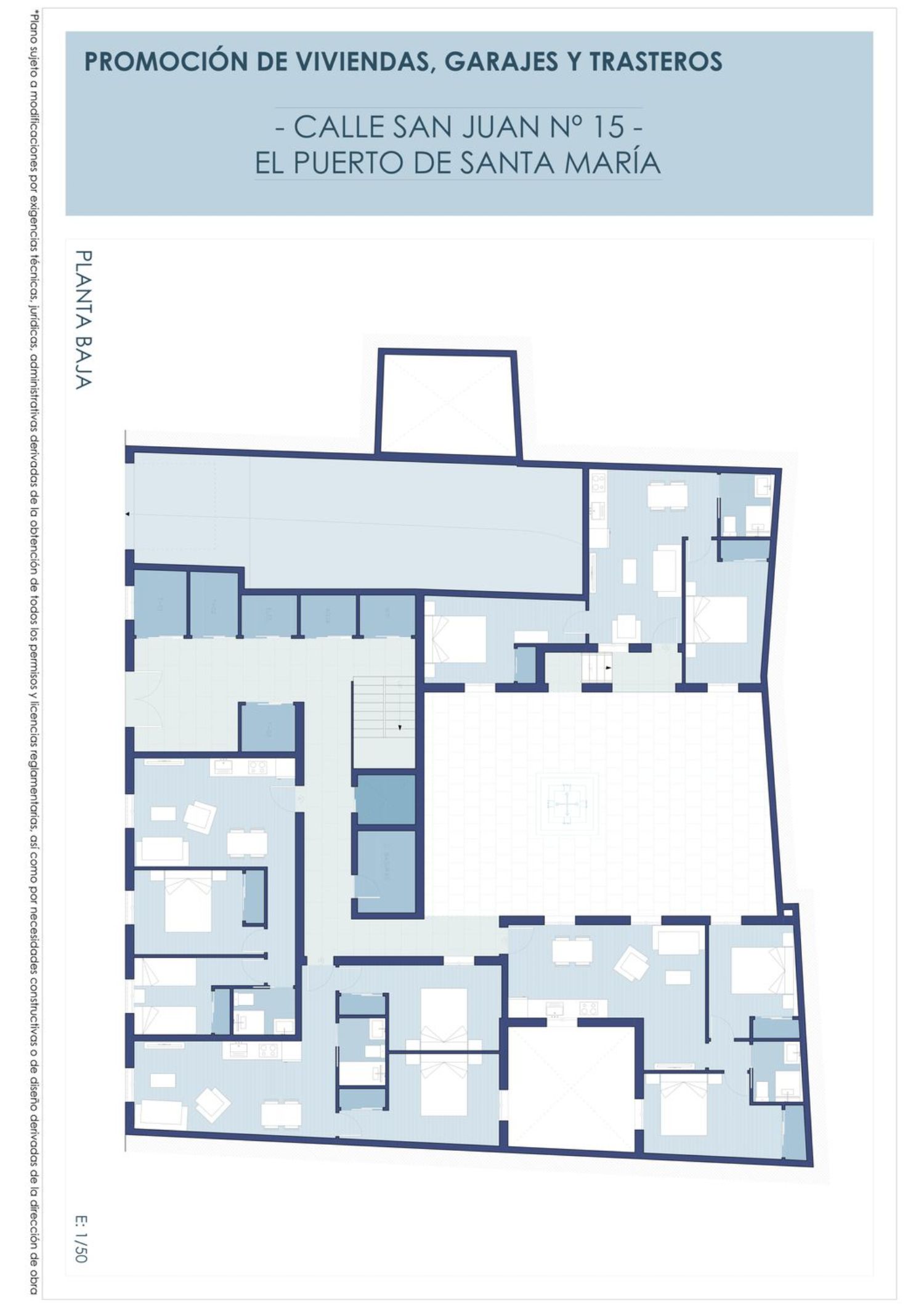 Promoción de edificio de viviendas, garaje y trasteros en calle San Juan nº 15 de El Puerto de Santa María.Los precios de las viviendas 150.500 euros garaje 18.000 euros gastos e impuestos no incluidos Forma de pago personalizada.
