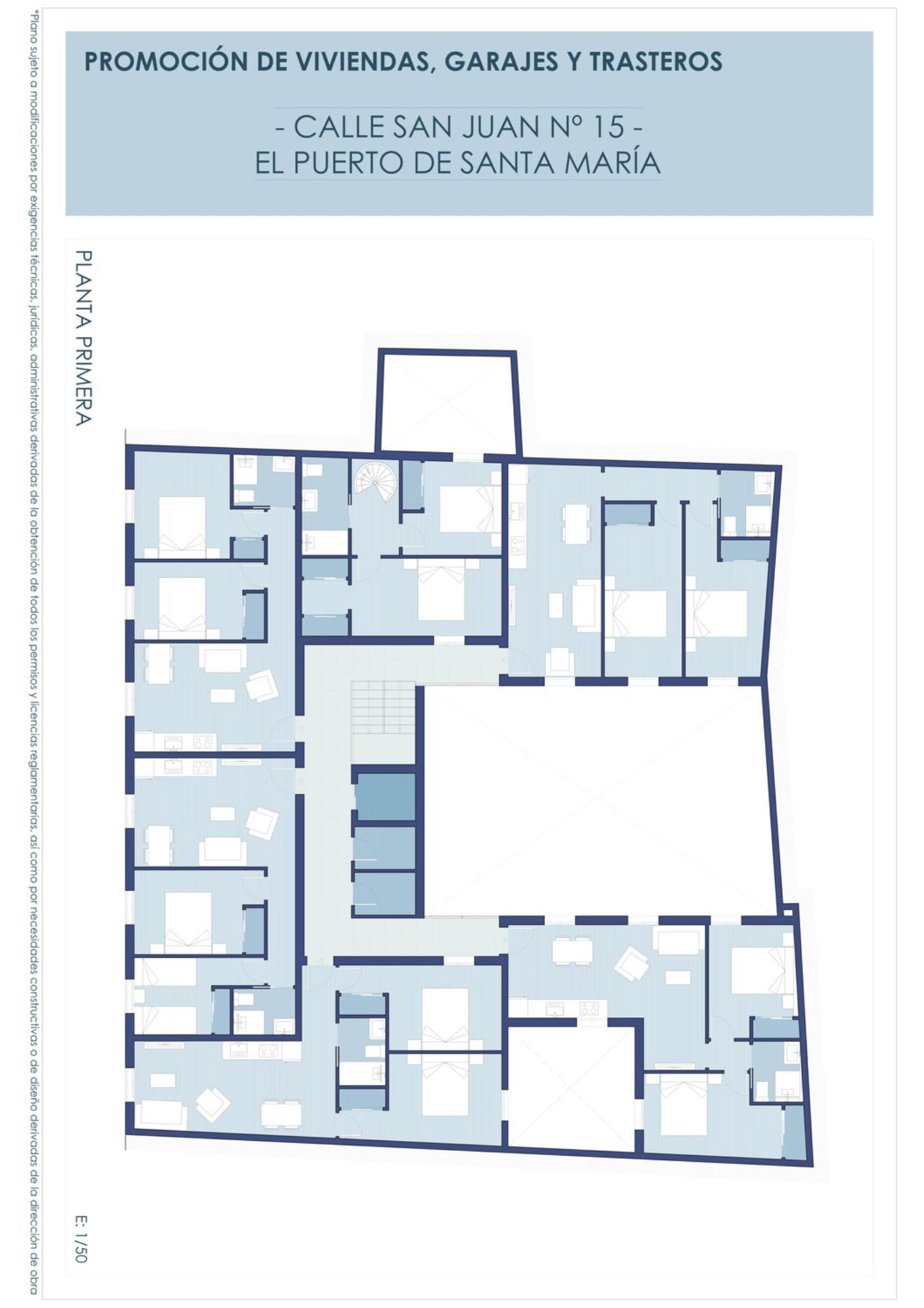 Promoción de edificio de viviendas, garaje y trasteros en calle San Juan nº 15 de El Puerto de Santa María.Los precios de las viviendas 150.500 euros garaje 18.000 euros gastos e impuestos no incluidos Forma de pago personalizada.