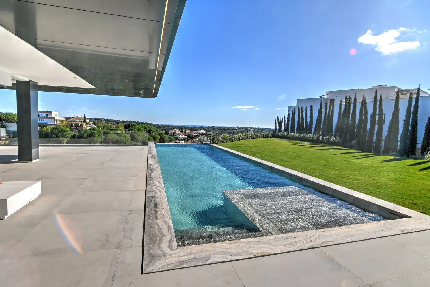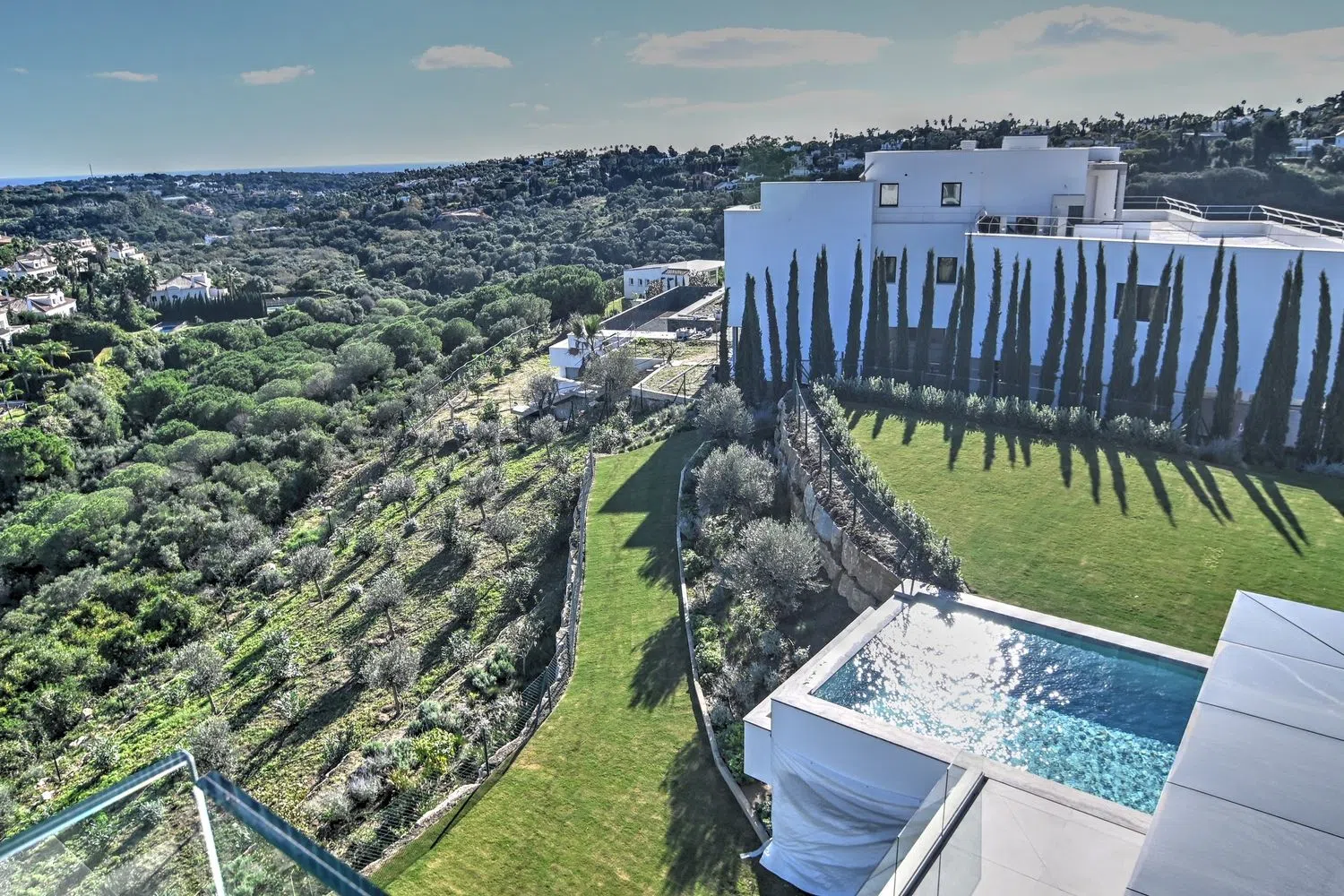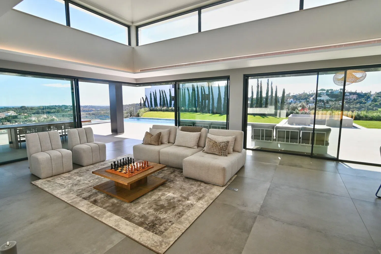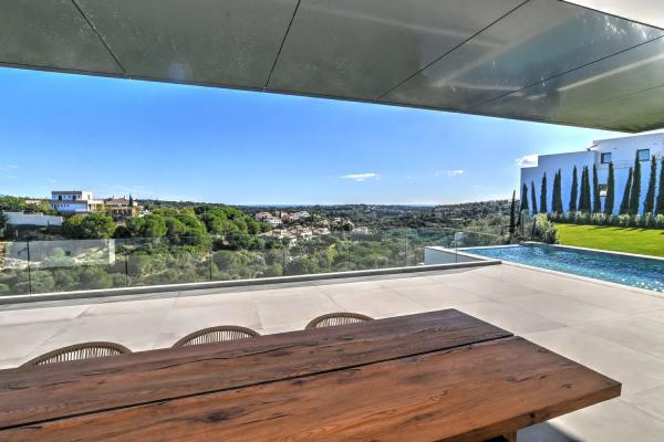 Descubre , una impresionante villa que presume de vistas impresionantes al Mar Mediterráneo y al Campo de Golf. Enclavada en la serenidad de un callejón sin salida privada, esta propiedad ofrece un retiro tranquilo. abarca generosos 658 metros cuadrados de espacio habitable, complementados por 360 metros cuadrados de terrazas, todo en una parcela orientada al sur de 3164 metros cuadrados. Esta villa consta de cuatro niveles, todos fácilmente accesibles a través de un ascensor. El nivel del sótano incluye un estacionamiento cubierto, un amplio garaje para hasta cuatro autos, una sala de cine, una zona de juegos, un gimnasio, una sauna y una generosa terraza de 74 metros cuadrados. En el nivel de la planta baja, encontrarás una amplia cocina de planta abierta y una sala de estar que abarca más de 100 metros cuadrados, que conduce a una terraza cubierta, un hermoso jardín, una zona de barbacoa y una refrescante piscina. Tres habitaciones dobles en suite, cada una con terrazas privadas, junto con un aseo para invitados, completan este nivel. Subiendo al piso de arriba, te esperan tres habitaciones más en suite, incluida la lujosa suite principal con vestidor. Cada habitación ofrece el lujo de una terraza privada. La joya de es el solarium de más de 100 metros cuadrados, donde puedes disfrutar del sol español durante todo el año y disfrutar de vistas panorámicas. encarna la elegancia de Sotogrande Alto. Con sus premios y su diseño impecable, promete una vida excepcional inmersa en el esplendor español. La finalización está programada para marzo de 2024. No pierdas la oportunidad de hacer de tu propio pedazo de paraíso.