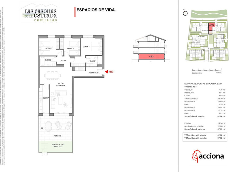 Las Casonas de la Estrada CantabriaVIVIENDAS PLURIFAMILIARES DE 2 A 4 DORMITORIOS A POCOS METROS DEL CAMPO DE GOLF Y DE LA PLAYALas Casonas de la Estrada es un exclusivo complejo urbanístico de alto nivel cerca del corazón de Comillas, con vistas a los Picos de Europa, a un paseo de la playa y cerca del campo de golf. Un residencial único compuesto por 40 viviendas plurifamiliares de diferentes tipologías donde disfrutar de la naturaleza espectacular de Cantabria.La ubicación de Las Casonas de la Estrada es inmejorable, ya que se encuentran en la Avenida Joaquín Ortiz de Zárate a escasos metros del Real Club la Estrada y el campo de golf Rovacías Golf. Junto al camino de Ruiseñada, están bien conectadas tanto con el centro del pueblo, a escasos 5 minutos a pie, como con la playa de Oyambre.Las viviendas han sido concebidas con un diseño arquitectónico que permite integrar el exterior con el interior gracias a sus amplias terrazas y jardines privados, y cuentan con detalles sumamente cuidados: materiales nobles, cocinas totalmente equipadas y los últimos avances en eficiencia energética. El complejo ofrece un cuidado paisajismo exterior con amplios jardines comunes en los que se utilizan plantas autóctonas.ACCIONA certifica que este proyecto ha sido desarrollado siguiendo los más altos estándares de sostenibilidad y eficiencia energética, empleando materiales de primera calidad y con la última tecnología para garantizar la eficiencia energética, el cuidado del medio ambiente y la reducción del consumo en suministros:- Calificación energética A- Punto de recarga para vehículo eléctrico- Placas solares- Certificación sostenibilidad BREEAMLas Casonas de la Estrada se ubica en una zona urbanística muy cerca del centro de Comillas, en la Avenida Joaquín Ortiz de Zárate a escasos metros del Real Club la Estrada y el campo de golf Rovacías Golf. Junto al camino de Ruiseñada, está bien conectado tanto con el centro del pueblo, a escasos 5 minutos, a pie de la playa.Un residencial para disfrutar de la montaña y la playa en armonía con la naturaleza.