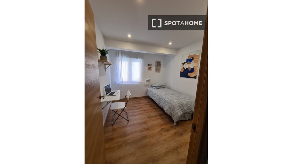 This room in a shared 3-bedroom apartment in Santander is fully furnished and offers a comfortable living space for tenants. The apartment has an equipped kitchen with appliances, including a dishwasher and an oven. Please note that it does not have air conditioning nor a balcony or terrace. The property is exterior and features an elevator in the building.