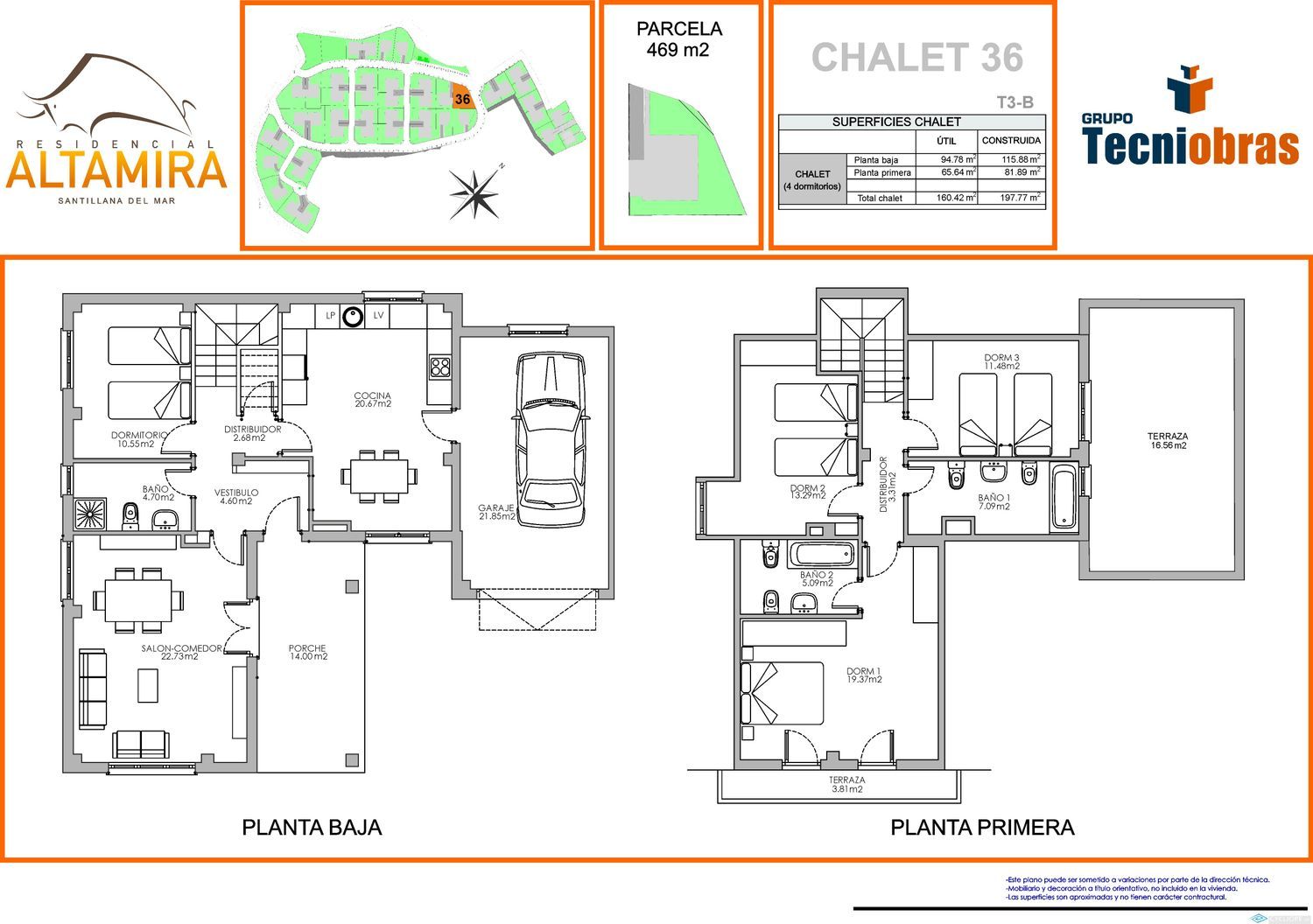 Santillana del Mar y Altamira se han convertido por méritos propios en marcas turísticas con mayúsculas. Su potencial de ocio y residencial atrae cada año a cientos de miles de visitantes que disfrutan de sus atractivos naturales, de su gastronomía y de su destacado sector de ocio y entretenimiento. Completan esta espectacular oferta turística la belleza de su paisaje, la proximidad a algunas de las más renombradas playas de Cantabria y la indudable calidad de sus comunicaciones. Todo ello convierte este municipio en uno de los emplazamientos más demandados para vivir.Y es precisamente en Vispieres, localidad perteneciente al municipio de Santillana del Mar, donde Tecniobras construye Altamira Residencial, una de las más atractivas urbanizaciones de Cantabria, ubicada en un punto estratégico del municipio, apenas a cinco minutos del famoso casco histórico de Santillana y a diez minutos de playas y zonas de ocio.Construido sobre una elevación del terreno, Altamira agrupa 48 espectaculares chalets pareados de una extraordinaria calidad, con un completo equipamiento, un cuidado entorno y cerrado perimetralmente para seguridad de sus residentes. Cada vivienda dispone de 4 dormitorios, amplias terrazas y acceso a jardines privados para disfrutar del exterior de la vivienda. Un lujo desde el que podrás contemplar la belleza de los paisajes del norte.Bienvenidos a Altamira.Bienvenidos a Tecniobras.CARACTERÍSTICAS DE LA PROMOCIÓN.- 48 chalets pareados de 2 y 3 alturas.- 4 dormitorios, 3 baños.- Salón con acceso a jardín.- Terrazas en todas las viviendas.- Jardines privados entre 200 m² y 750m².- Entorno residencial nuevo.- Carpintería exterior alto-eficiente.- Pre-instalación domótica.- Tecnología High Tech residencial.- Materiales de construcción certificados.- Paisajismo residencial.