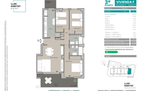 Lujosas viviendas situadas en el residencial Llar Habitat Grao, una promoción de 26 residencias en cuatro alturas que aúnan el diseño y la calidad en todas las estancias. Situado en un enclave único, Llar Habitat Grao se encuentra a 200 metros de la playa del Grao, con unas vistas espléndidas al Paraje Municipal del Clot y a la costa norte de Burriana. Con una disposición con grandes ventanales, amplias terrazas y áreas exteriores, Llar Habitat Grao es la primera promoción residencial de la localidad con eficiencia energética A gracias a su diseño, sus instalaciones de alto rendimiento y los materiales aislantes que contribuyen al ahorro energético. En Llar Habitat Grao disfruta de zonas verdes, zona de juegos para niños y niñas, chill out, gimnasio exterior, diferentes piscinas y una sala social-gourmet acondicionada con muebles de cocina y salón, toma de TV y WiFi.