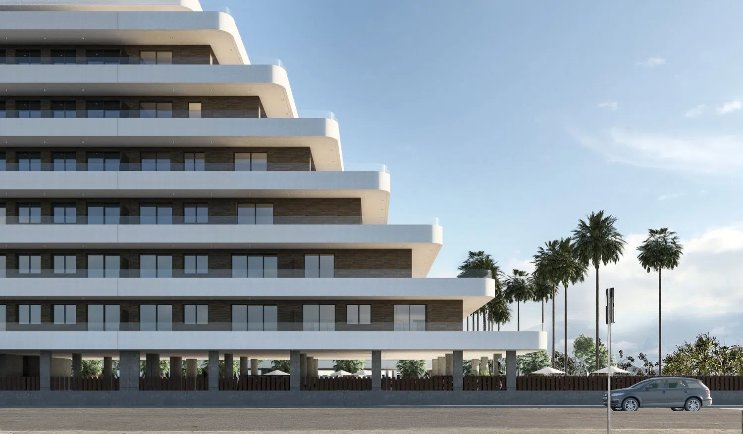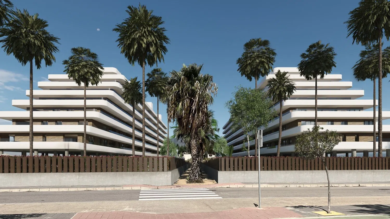 The complex is surrounded by expansive gardens and recreational spaces designed for your leisure and relaxation. With a focus on exclusive design, you’ll find vast communal areas featuring gardens, swimming pools, play areas for children, a gym, meeting spaces, and much more. These apartments offer the ideal space, ranging from two to three bedrooms, each with a terrace and stunning sea views, covering between 85 to 140 square meters. Prices range from €189,000 to €259,000, including parking and storage.