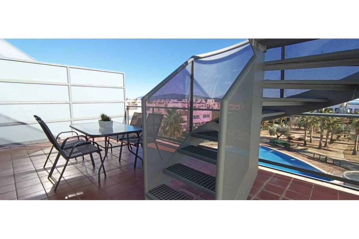 Alquiler de piso de 2 habitaciones una de ellas suitte con salida a terraza. con vistas al mar y acceso a solarium, 1 baños auxiliar completamente amueblado en urbanizacion panoramica golf, zonas ajardinadas con piscina, pistas de padel y tenis y parque infantil, no la dejes escapar! NO SE ACEPTAN MASCOTAS.