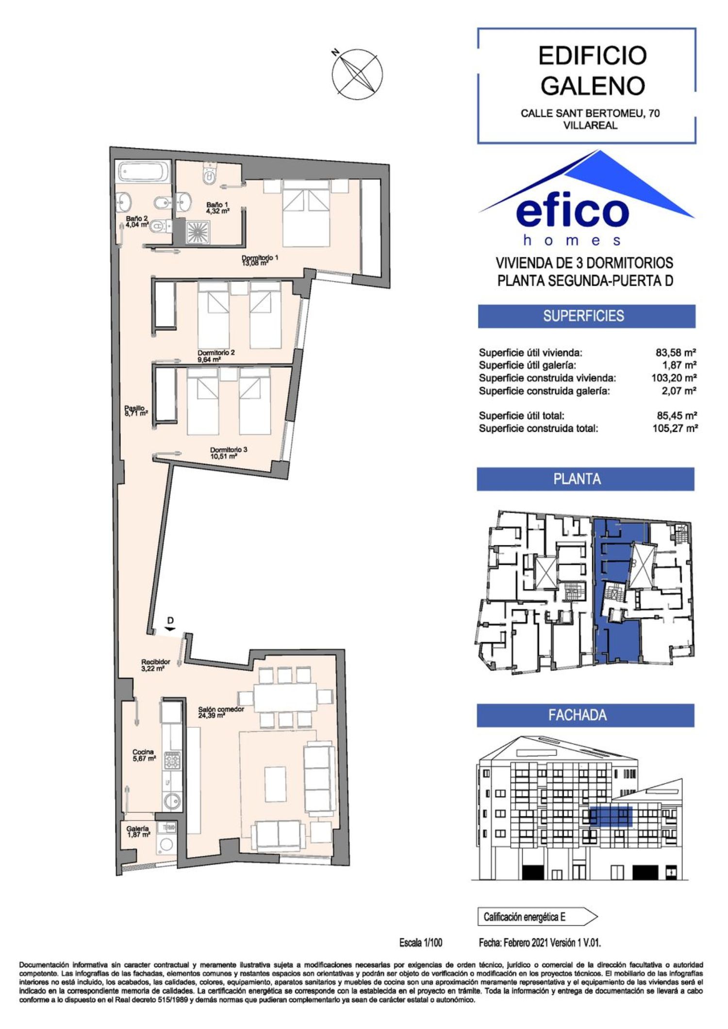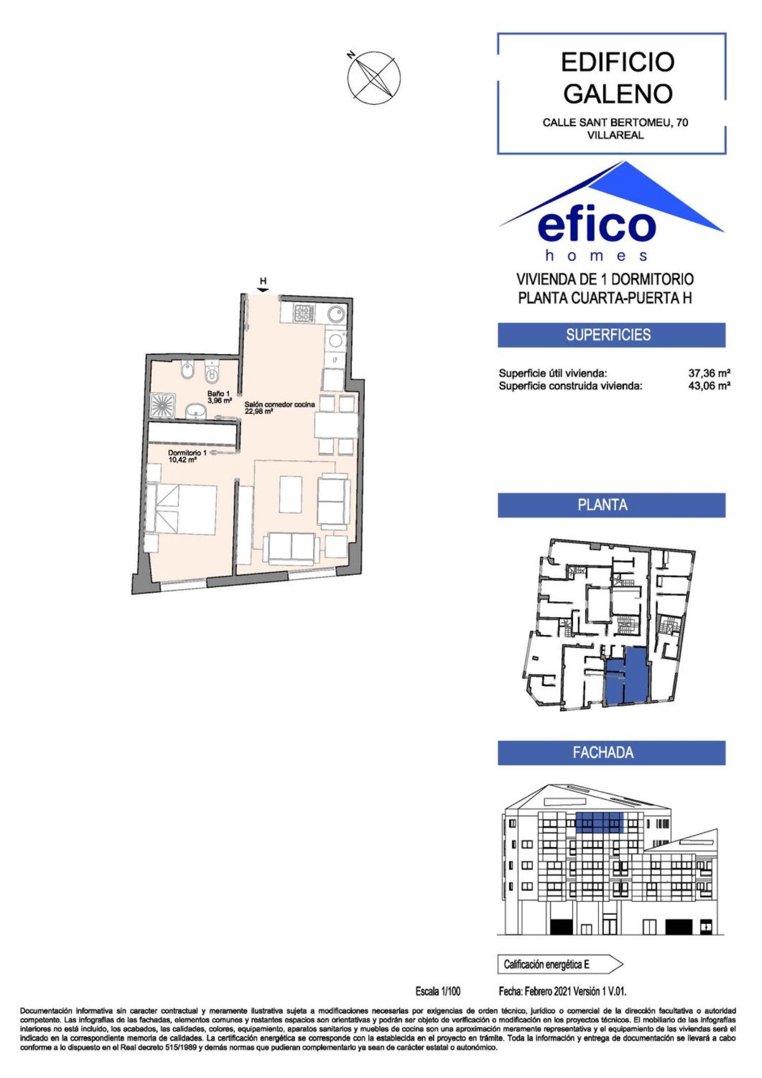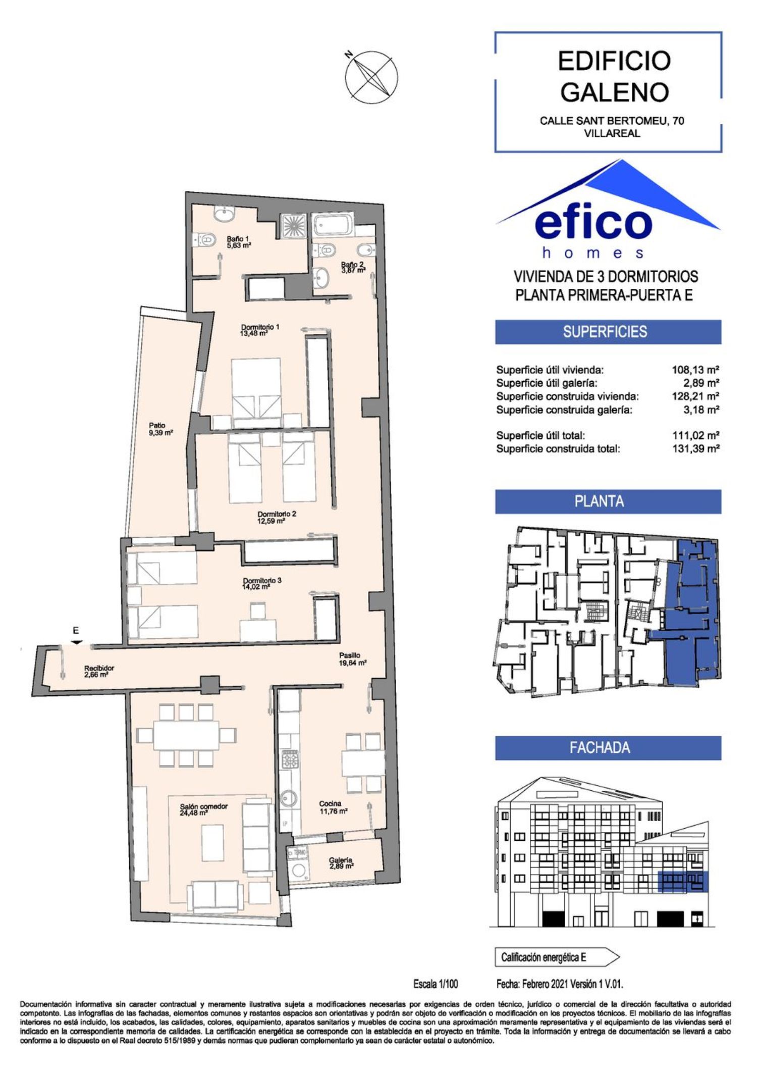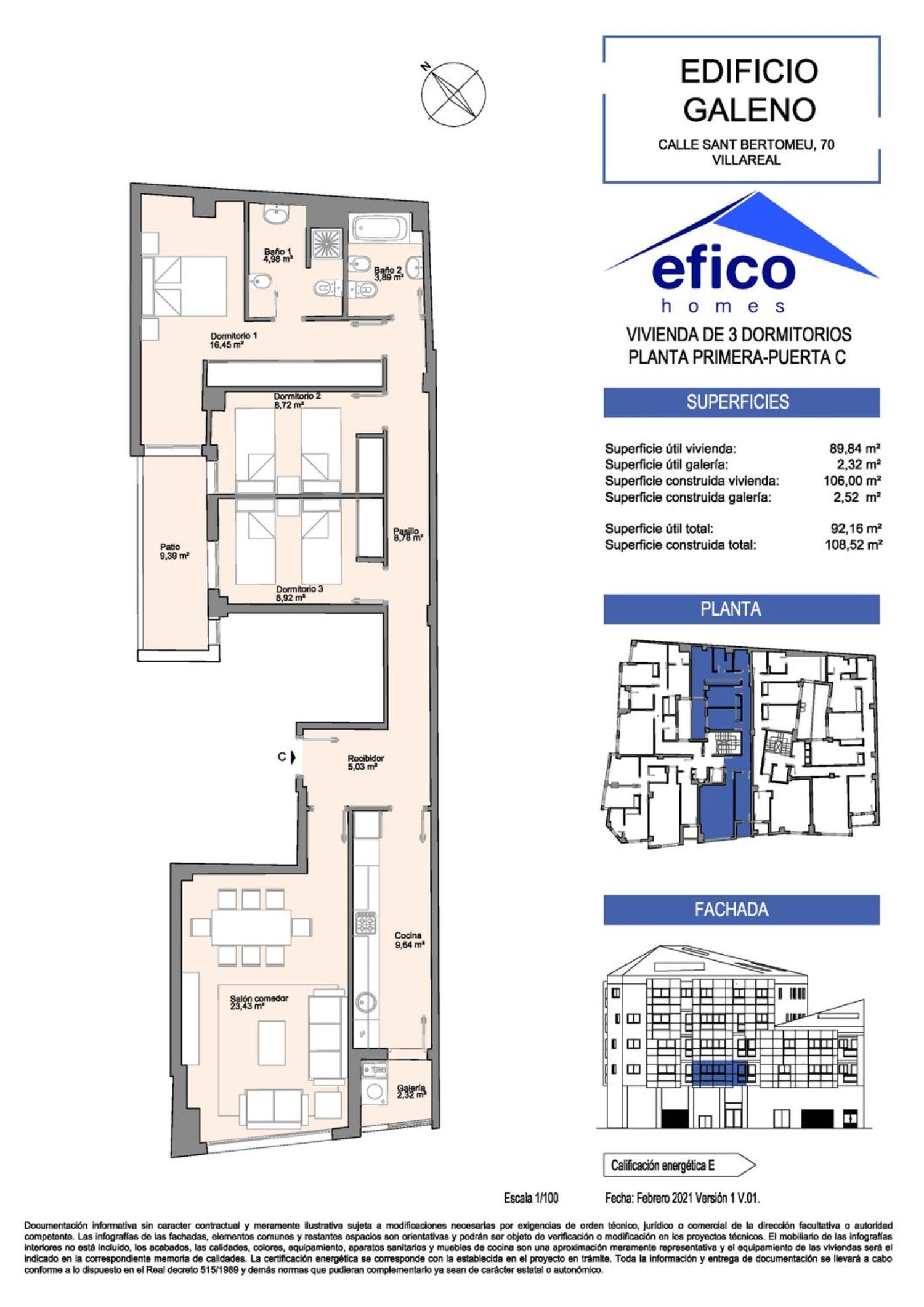 ¿Sueñas con estrenar casa en Villarreal? Pocas sensaciones te darán más satisfacción que adquirir una vivienda de obra nueva, una vivienda que se ha construido para tí, para acoplarse a tu forma de vida y para darte ese bienestar que tanto necesitas. Es una ilusión inmensa y que ahora más que nunca te mereces.El Edificio Galeno, ubicado en el precioso barrio del Cristo del Hospital, te brinda la oportunidad de hacer realidad tu sueño. Edificio de 20 viviendas en esquina y con orientación sur-oeste para captar toda la luz y el calor del sol, diferentes tipologías con 1, 2, 3 y 4 dormitorios, preciosos dúplex y espectaculares áticos para que tú elijas el mejor modelo.Sus diseños te cautivarán, así como las excelentes calidades constructivas: suelos de mármol, Puerta acorazada en acceso a vivienda. Puertas de paso lacadas en color blanco, con herrajes cromados. Armarios modulares de hojas lacadas en color blanco. Carpintería exterior de aluminio lacado. Acristalamiento doble con vidrios laminares y cámara de aire tipo climalit. Cocinas totalmente equipadas y Aire acondicionado con bomba de frio-calor.Ubicado muy cerca de la Avenida Italia y en pleno casco histórico de Villarreal, el edificio Galeno nos ofrece la tranquilidad de vivir dentro de la Vila, pero estar perfectamente comunicados con centros comerciales, colegios, centros médicos y supermercados y centros deportivos como la ciudad deportiva del Villarreal CF. *Las imágenes publicadas son meramente informativas y genéricas de la promoción Edificio Galeno, por lo que no pueden corresponder con el inmueble del anuncio.