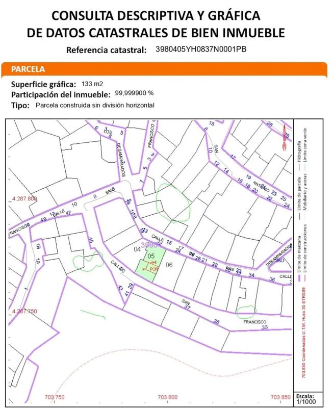 Solar urbano de 133m2 para construcción de una vivienda unifamiliar en el centro...