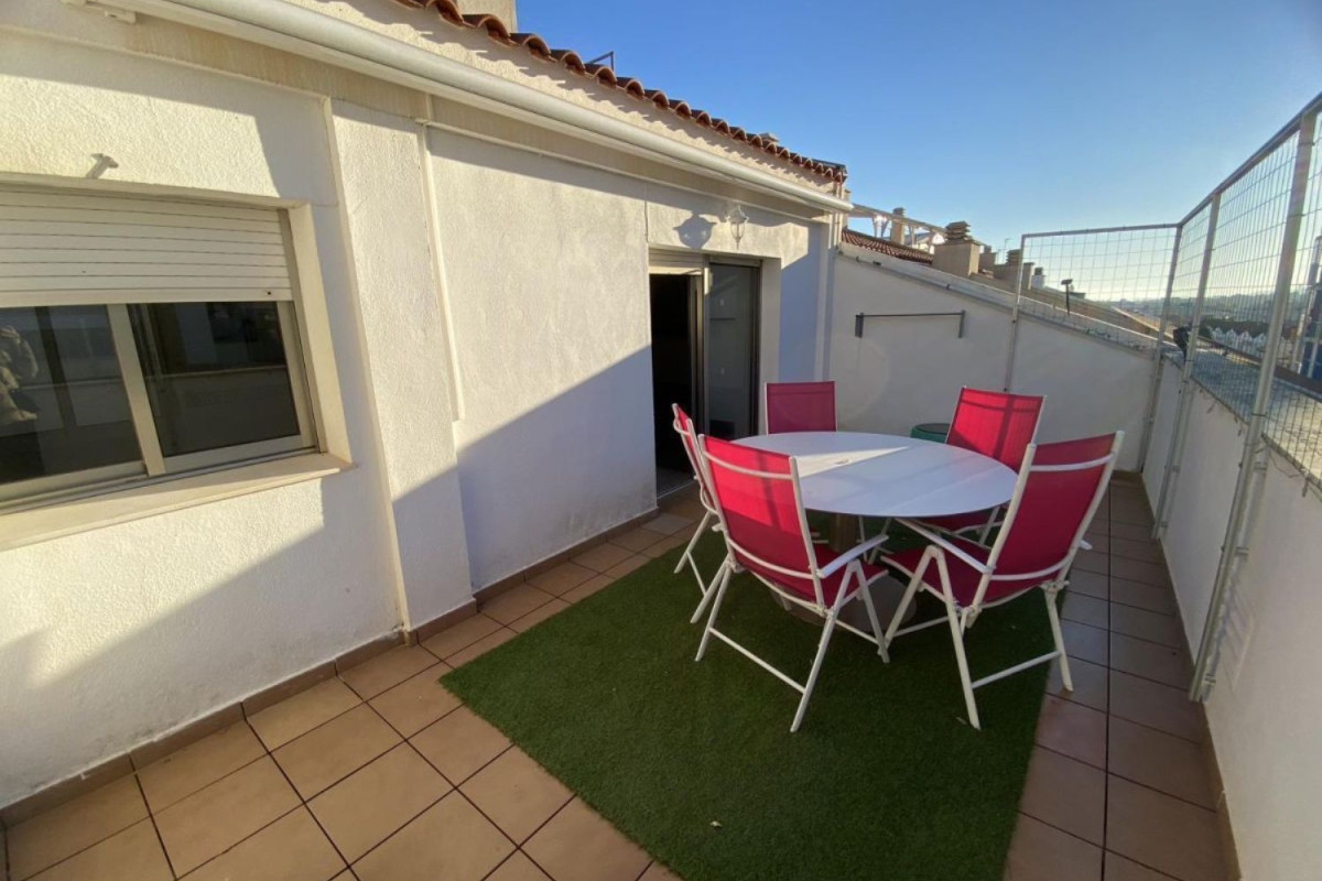 Atico duplex en venta en Sant Carles de la Rapita, Costa Dorada. Tiene una superficie de 117m2 que se distribuye en dos plantas. En la planta baja entrando hay un recibidor con un gran armar...