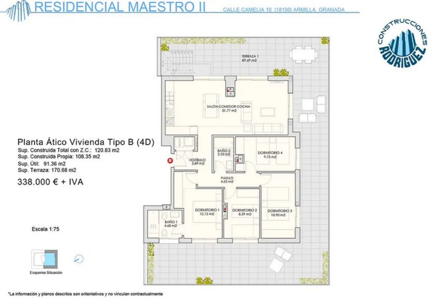 GRANDES RAZONES para elegir “Edificio Maestro 2” Primera razón Localización Ubicada en zona residencial de nueva expansión, totalmente consolidada, junto a la iglesia de San Miguel y la parada del Metropolitano Fernando de los Ríos (3 minutos a pie), edificio vanguardista, ubicado en la C/ Alhelí, junto al parque infantil público, amplias zonas verdes así como espacios deportivos en su entorno y privilegiadas vistas a la vega de Granada. Segunda razón Calidad de vida Construcciones Rodríguez, como siempre, ofrecerá a sus propietarios las últimas tecnologías para obtener una absoluta eficiencia energética, accesibilidad garantizada y zonas de expansión privadas con piscina comunitaria, todo ello contribuirá sin duda a una mayor calidad de vida de los residentes. Tercera razón Inversión Como en todos nuestros proyectos su relación calidad/precio avalada por la experiencia de Construcciones Rodríguez, lo convierte en una inversión segura y con garantía de valor añadido.NOTA: Las plazas de garaje y trasteros no están incluidos en el precio. Se pueden elegir y según ubicación y dimensiones.