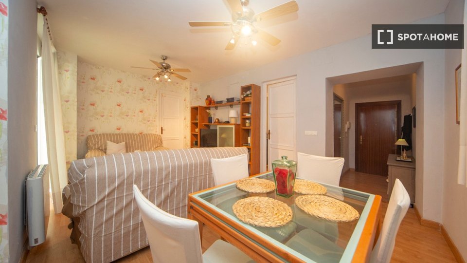 This room in a shared 3-bedroom apartment in Centro-Sagrario, Granada, offers a comfortable and well-equipped living space for professionals, students, and Erasmus tenants. The apartment is rented directly by the landlord, and utilities, including electricity, water, wifi, are paid upon invoice. Note that gas is not available in the property, and couples or families cannot be accommodated.