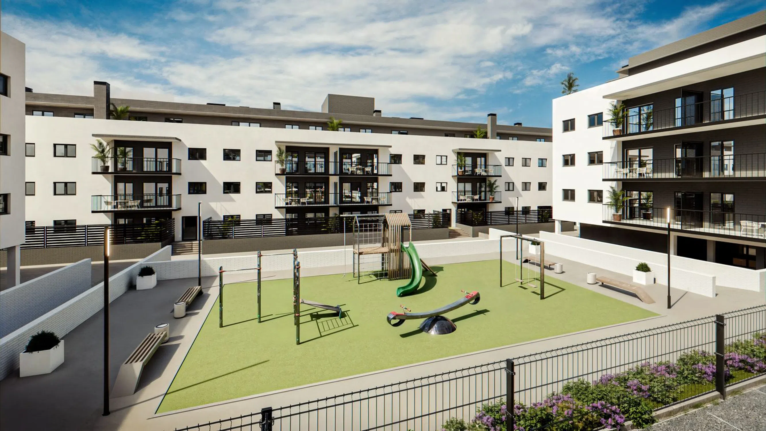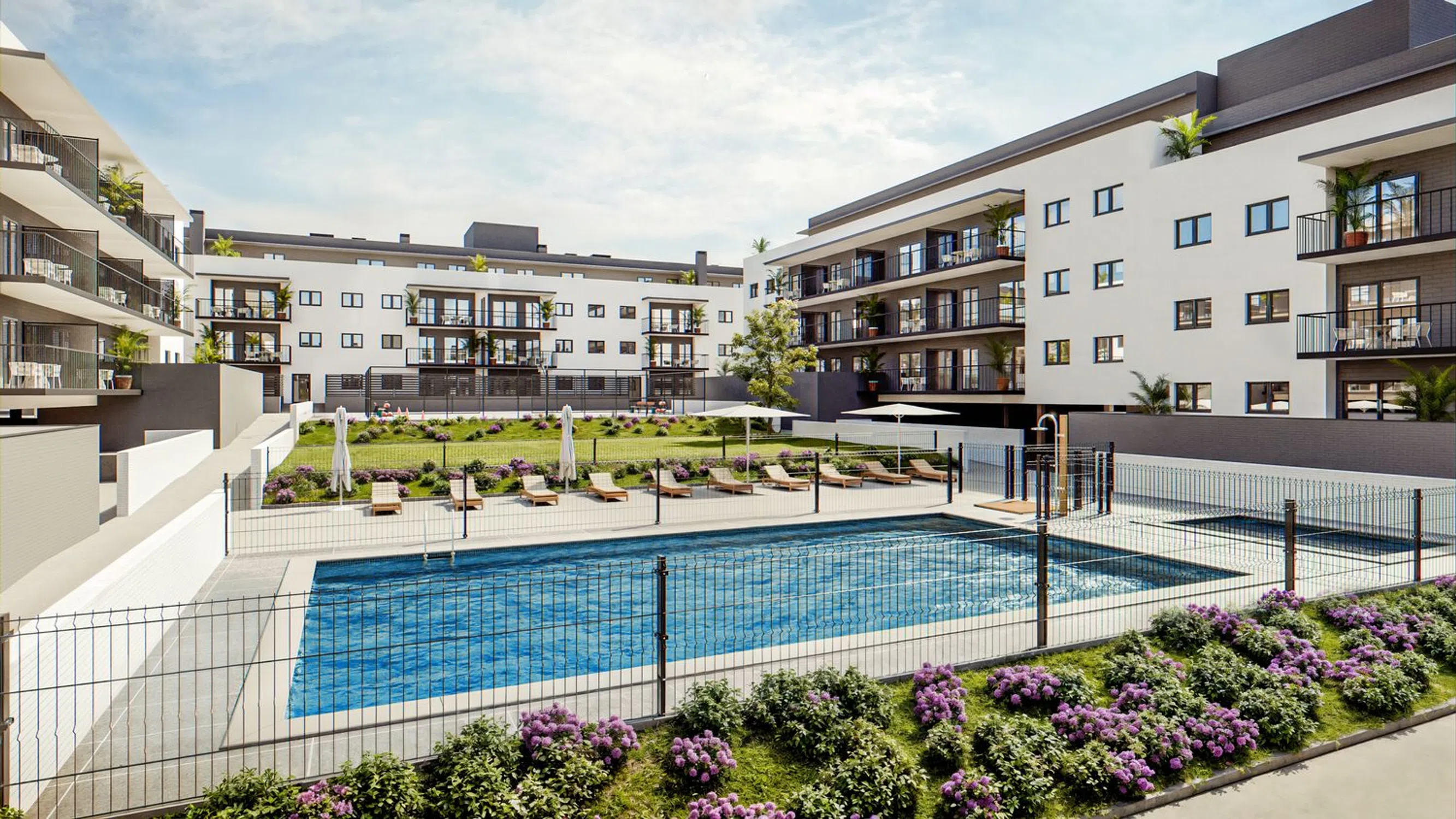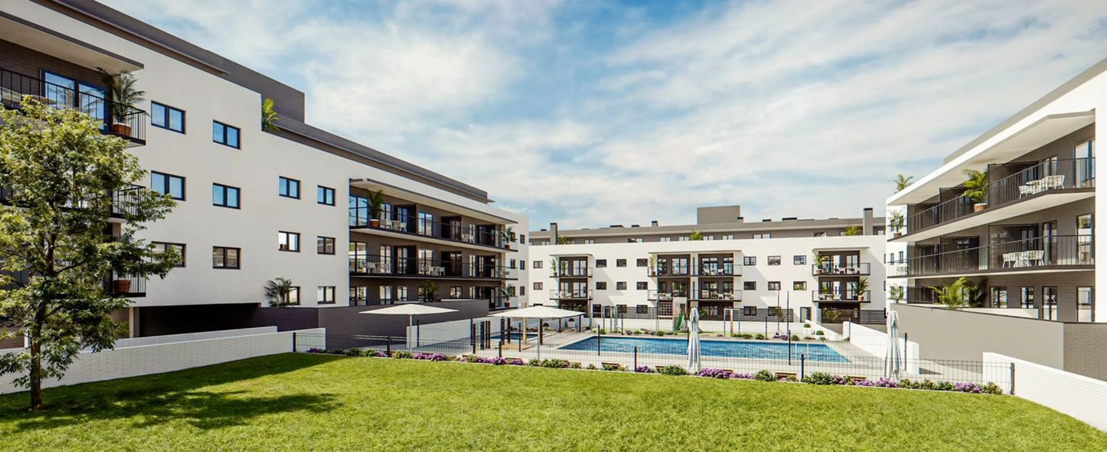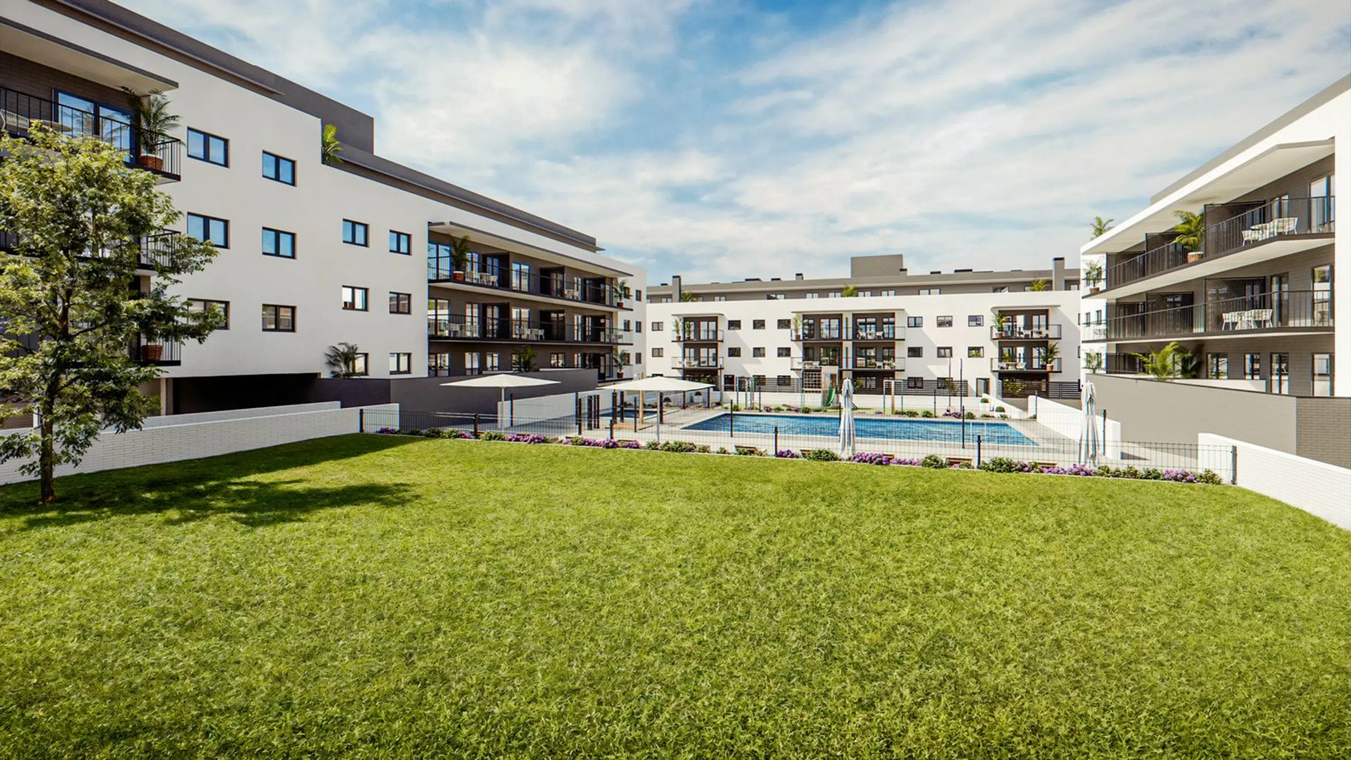 The community areas feature a swimming pool, playground, sports area, social club, and landscaped gardens. This project stands out for its sustainable design and high-quality materials with low environmental impact.