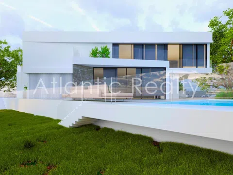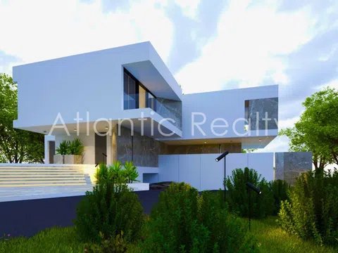 Each villa boasts two spacious terraces on the first floor and a large ground-floor terrace leading to a private heated pool of 50 m². The surrounding grounds are meticulously landscaped with lush lawns. The homes come equipped with a fully fitted kitchen featuring high-end furniture and appliances, complete bathrooms, and superior-quality built-in wardrobes. Exceptional materials are employed throughout, including a ventilated natural stone façade, SCHÜCO windows, VILLEROY & BOCH plumbing, PAFFONI faucets, and RIMADESIO interior doors standing at 2.40 meters. All rooms have three-meter-high ceilings. A DAIKIN closed-loop air conditioning and ventilation system ensures comfort, augmented by underfloor heating in every room. Additionally, the "Smart Home" system is incorporated to enhance comfort, supported by fiber optic telecommunications.