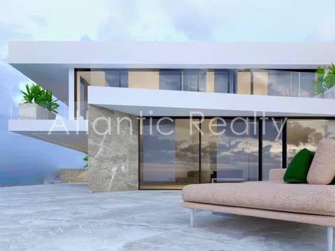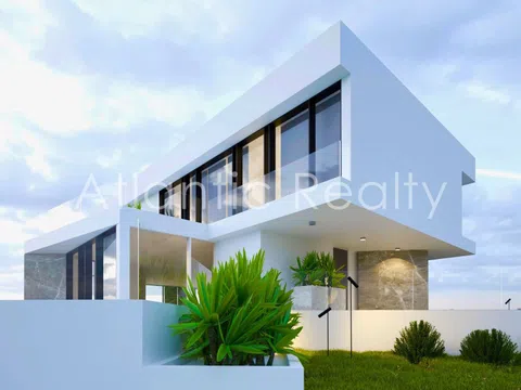 The villas are thoughtfully distributed over three levels. The main floor features an expansive living room with large windows offering clear views, a combined kitchen-dining area, a dressing room, and a guest bathroom. On the first floor, there are three bedrooms, each with an en-suite bathroom and access to terraces ranging between 15 m² and 47 m², providing breathtaking sea views. The basement includes a garage accommodating four cars, a utility room, laundry facilities, and storage space.