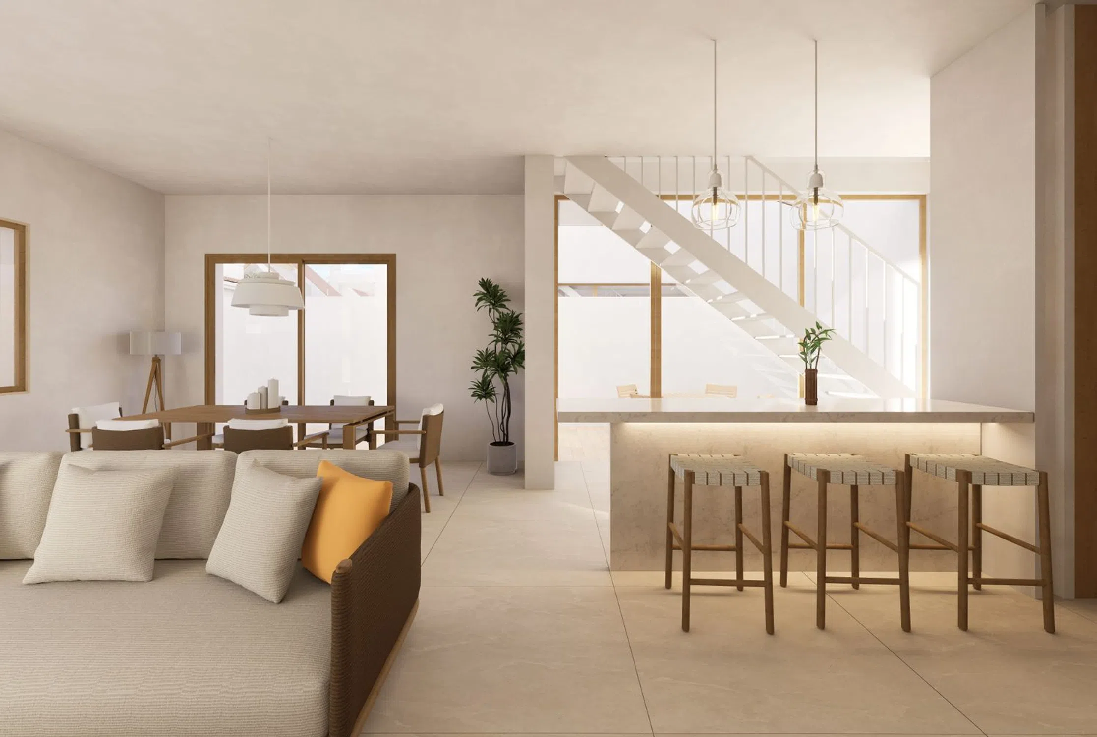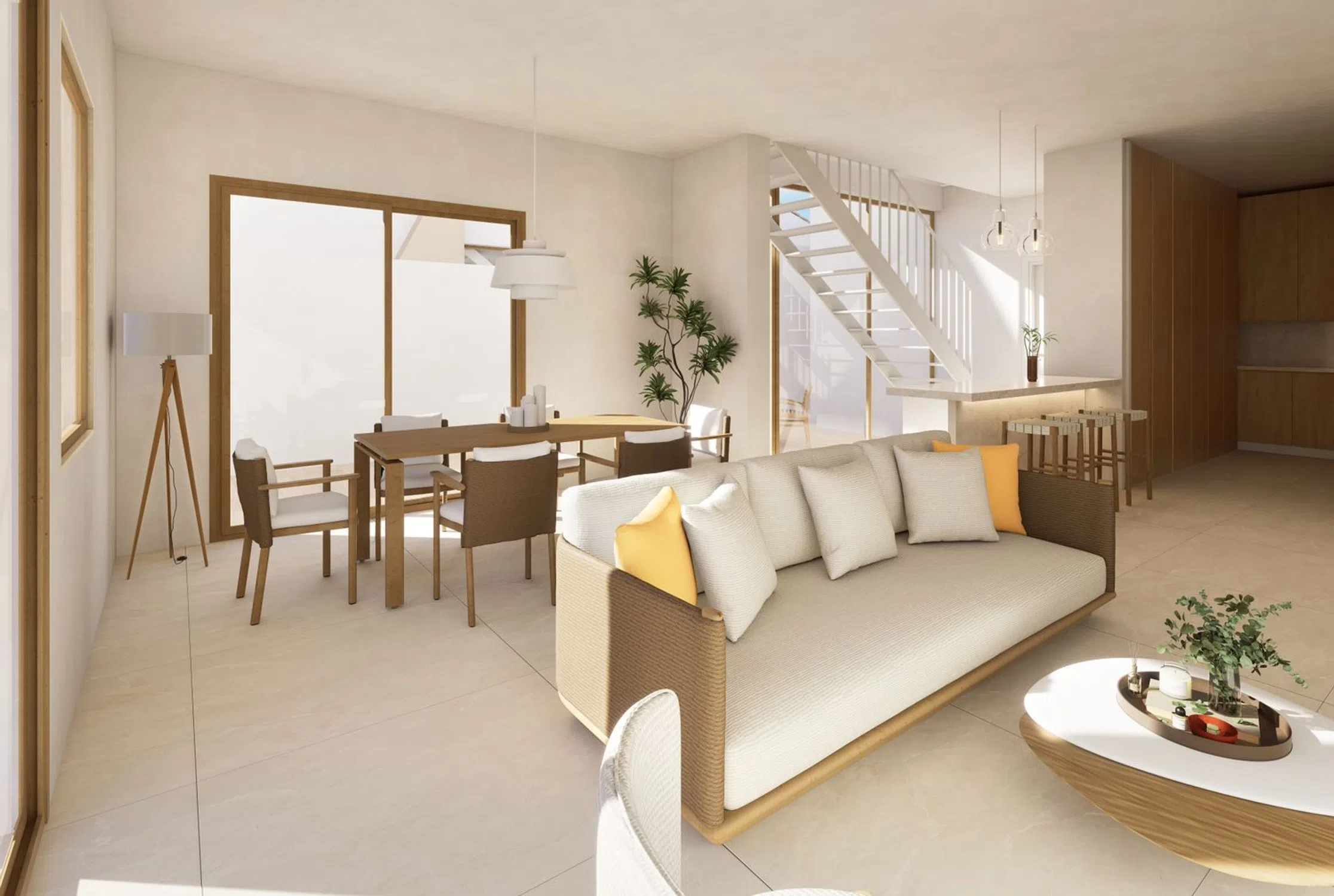 El objeto del presente Proyecto de Ejecución es la edificación de 12 viviendas unifamiliares, desarrollada en la primera fase del plan parcial del sector 4B-2 en Ayamonte, Huelva. Las viviendas se organizan en una hilera de edificios horizontales, con 2 plantas sobre rasante destinadas exclusivamente a uso residencial, sin locales comerciales ni plantas bajo rasante. El acceso a cada vivienda se realiza de manera individual y directa desde la vía pública, sin necesidad de portales ni comunidad de vecinos. Cada vivienda consta de cuatro dormitorios, distribuidos entre la planta baja y la primera, según tipología. Además, dispone de 3 baños distribuidos en cada una de estas plantas, y de una cubierta transitable con preinstalación para Jardín de Invierno. Sus estancias de uso común incluyen un salón-comedor amplio, una cocina abierta e integrada al salón-comedor, un patio interior y varias terrazas cubiertas o descubiertas, distribuidas entre las distintas plantas, dependiendo de la tipología.