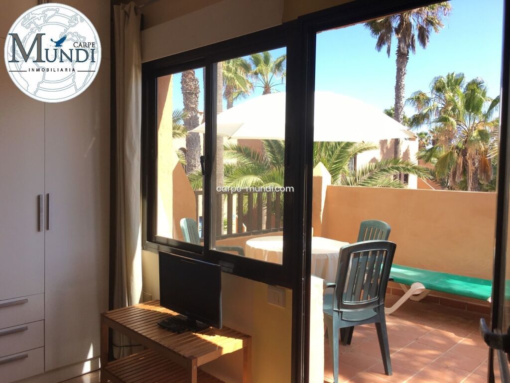 This beautiful one bedroom apartment, on the 1st floor, is located in Corralejo, in the complex Oasis Dunas. This complex is one of the best in Corralejo. It has beautifully maintained communal gardens and a lovely communal pool area with tropical trees and plants, an ideal place to relax and sunbathe. Surrounding the complex are gyms, shops, restaurants, bars and one of the largest shopping centres in Corralejo, El Campanario. The main street is only a few minutes' walk away, as are the spectacular beaches of Corralejo. The furnished apartment consists of a bedroom, living/dining area with a kitchenette, a bathroom with a shower and a private terrace where you can enjoy the perfect climate that the island offers all year round. This apartment is perfect for a couple as a primary home or as a secondary home to spend a fantastic holiday in Fuerteventura and enjoy the unbeatable climate and spectacular beaches. But it would also be a very good investment to rent out touristically.Don't miss this great opportunity!Do not hesitate to contact us for more information and organise your visit with Carpe Mundi Inmobiliaria, your real estate company of confidence in Fuerteventura and experts in the Canary Islands with multilingual agents! Save time and get the investment or the porperty you are looking for at the best price - your new home in Corralejo is waiting for you!
