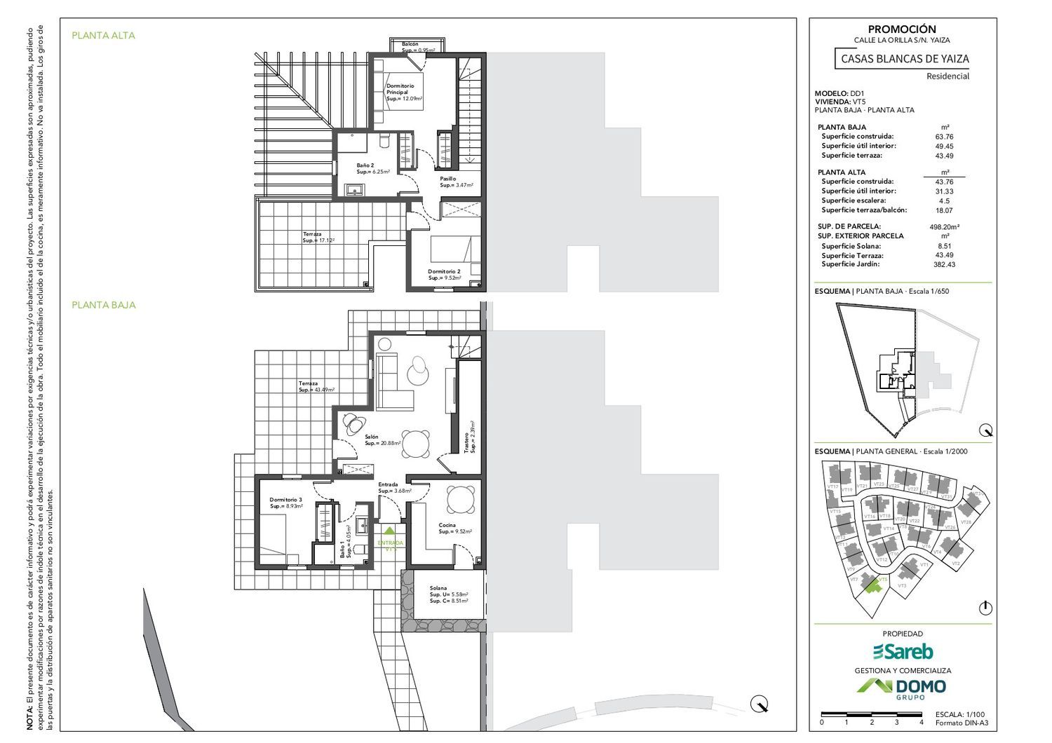 Promoción de 31 chalets unifamiliares situada en Yaiza, en Lanzarote. Se distribuyen a lo largo de una vía interior, con acceso desde dos calles, una de ellas vía principal dentro del municipio.Las viviendas son de dos plantas con 3 dormitorios, dos baños y aparcamiento abierto en superficie. Solo una vivienda dispone de piscina y garaje bajo rasante (vivienda 17). Grandes parcelas privativas.Se trata de un proyecto que se encuentra ejecutado aproximadamente en un 90%. Las obras se han reanudado en octubre de 2022, y está previsto que finalicen en la otoño de 2023.Se trata de una excelente oportunidad que se puede destinar a primera vivienda pero también para segunda y como inversión.