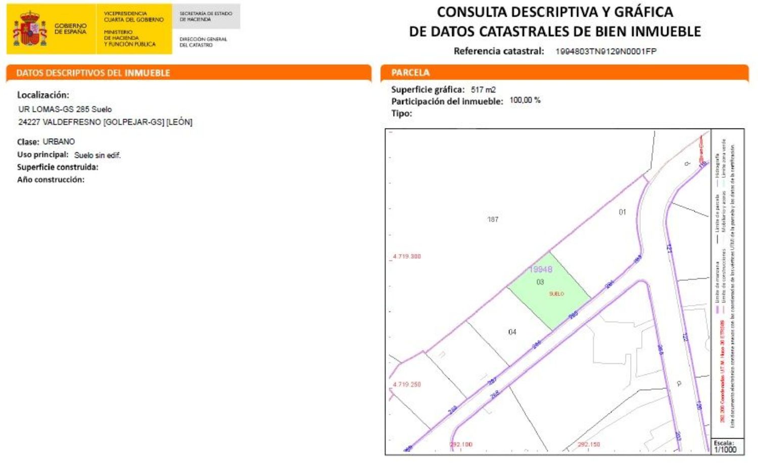 Solar urbano de 517 m2 en urbanización las lomas. primera línea con caída de león. oportunidad para hacerte la casa de tus sueños!