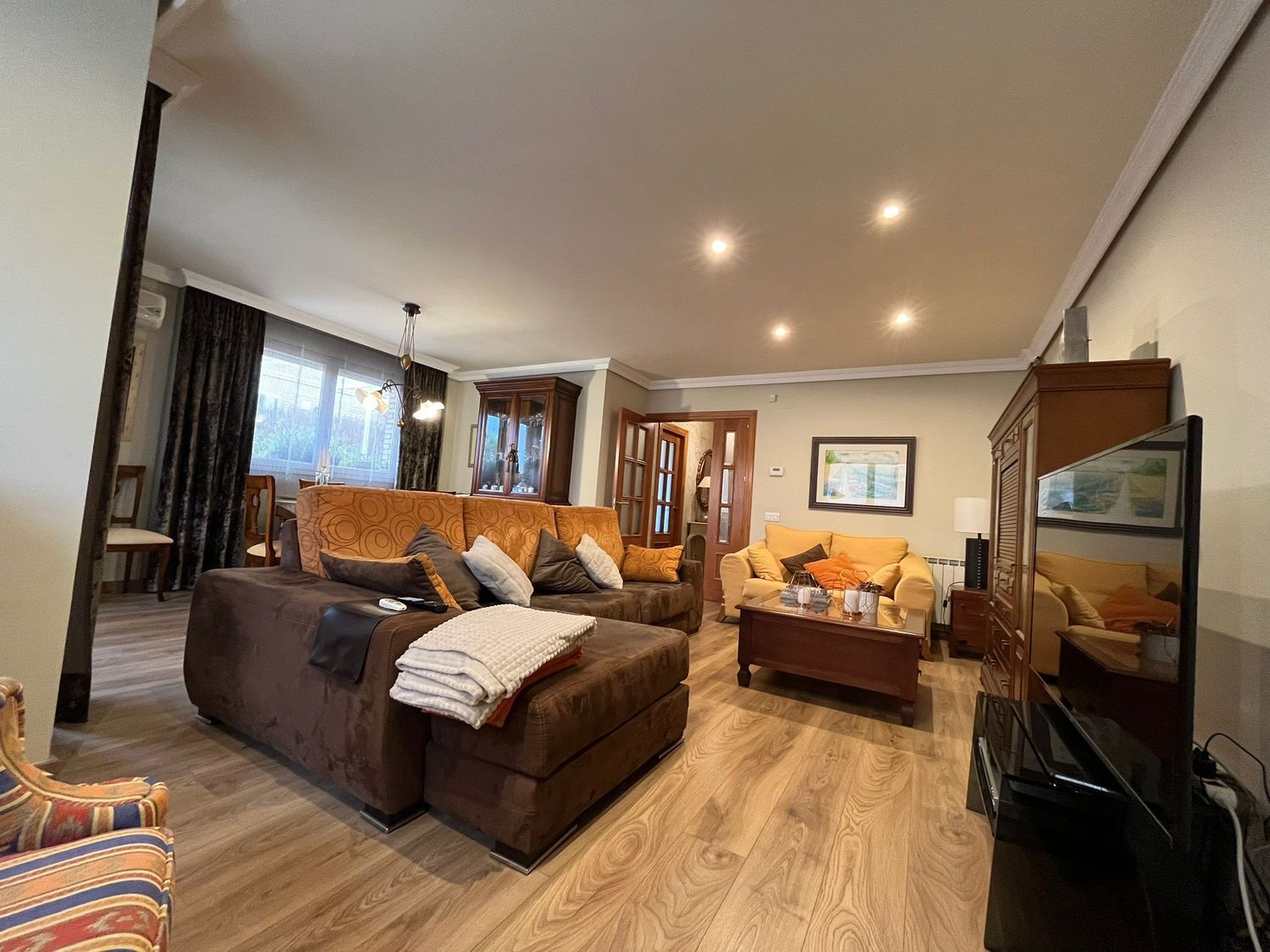 En LASA Grup ofrecemos este acogedor apareado de 280 m2 útiles y 322 construidos equipado con materiales de primera calidad y aire acondicionado por toda la vivienda, tiene un agradable jardín privado y piscina comunitaria, la vivienda dispone de un garaje en sótano para 4 vehículos y bodega. En planta baja de 86 metros cuadrados disponemos de recibidor, comedor con salida a terraza y jardín, cocina con salida a terraza, un baño, dormitorio y escalera para acceder a la segunda planta. En la primera planta de 57 metros cuadrados encontramos 2 dormitorios dobles con salida a balcón y un tercer dormitorio con baño integrado y salida a balcón, todos ellos muy luminosos y espaciosos. En la segunda planta se encuentra el bajo cubierta de 32 metros cuadrados que tiene una zona de estudio, una zona de lavandería y terraza. Para acceder a la zona comunitaria donde está la piscina y zona verde lo hacemos a través de la terraza de la vivienda, de está zona se paga una cuota de comunidad de 90 euros. El inmueble se encuentra ubicada en Torrefarrera un pueblo al lado de Lleida ciudad. Entre las ventajas de vivir en esta zona de Lleida podemos destacar la tranquilidad y la seguridad que brinda el pueblo, además, esta muy bien comunicado y cuenta con todos los servicios y colegios al lado de casa.