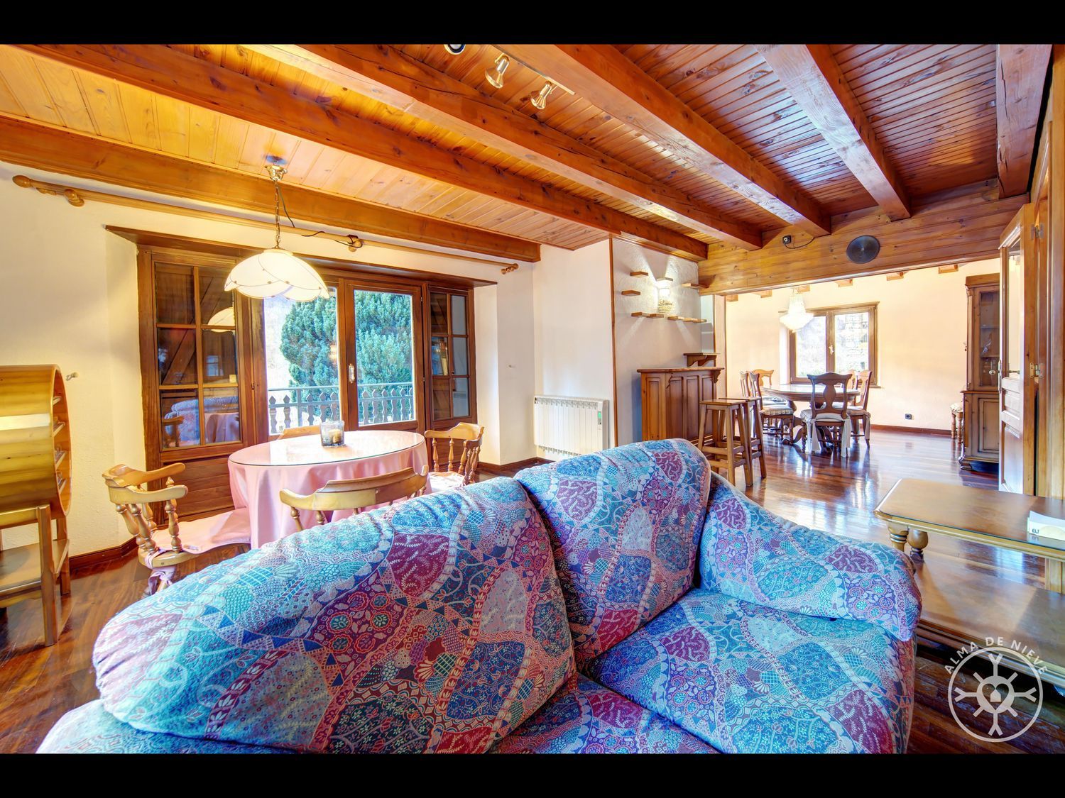 Ésta magnifica propiedad situada en una de las zonas mas exclusivas de Vielha, Urbanización Sta Gemma, con orientación sur y muchas vistas.La Casa tiene 250m2 distribuidos en 4 plantas.En planta baja encontramos un garaje, con un gran salón con cocina y bodega y salida al jardín privado con barbacoa y un baño completo. Subiendo una planta nos encontramos con el salón donde desde el balcón del mismo podemos bajar también al jardin privado, cocina y aseo, en la tercera planta tenemos 4 dormitorios con dos baños y el fumeral. El dormitorio principal un enorme espacio con amplio balcón y baño en suite completo, con bañera de hidromasaje. 3 dormitorios mas en planta con otro baño que les asiste y en la planta fumeral otro dormitorio con baño.La propiedad está orientada al Sur por lo que tiene sol prácticamente todo el día y unas vistas maravillosas.