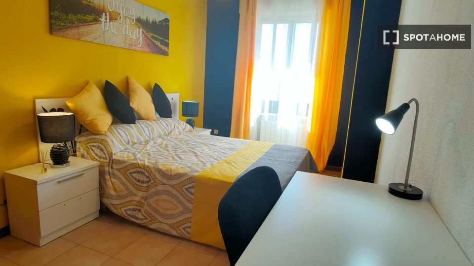 This spacious 5-bedroom apartment on Calle Barberán, in Alcalá de Henares, has 5 bright rooms for rent. The property offers a fully equipped kitchen with an oven, dishwasher, a microwave, and 2 full size refrigerators. There are also 2 shared bathrooms and heating is installed to keep you cozy in the winter.