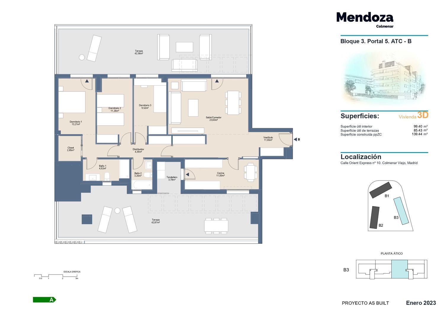 es una magnífica promoción de viviendas de 2, 3 y 4 dormitorios. Ubicada en la zona de la Estación en Colmenar, localizada en un entorno natural de gran belleza a los pies de la Sierra del Guadarrama.La urbanización está compuesta por tres bloques de viviendas, cuenta con todas las orientaciones y unas zonas comunes que incluyen: piscina de adultos y niños, gimnasio, local comunitario, pista de padel, zona ajardinada y zona de recreo infantil.Todas las viviendas son amplias, luminosas y cuentan con grandes terrazas. Disponibilidad de bajos con jardín y áticos. Los precios incluyen dos plazas de garaje y un trastero.Calificación energética A, sistema de aerotermia con suelo radiante y refrescante en la vivienda, pavimentos de gres porcelánico y cocinas amuebladas.Además podrás disfrutar de una gran oferta de ocio en la Ciudad Deportiva Juan Antonio Samaranch que incluye entre otras actividades: tenis, pista de atletismo y golf.Entrega primer cuatrimestre 2023.