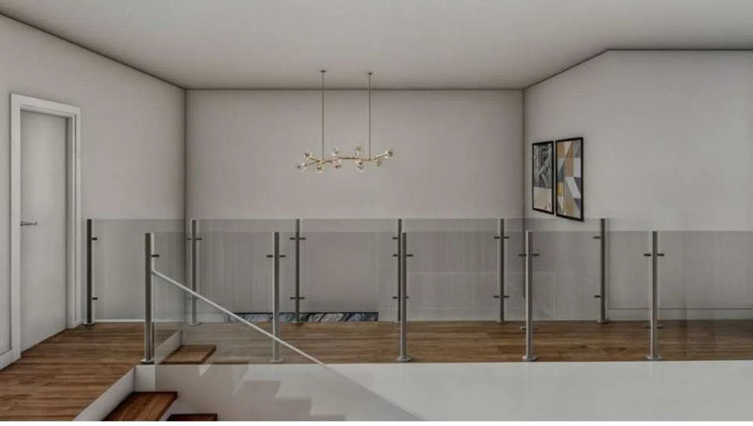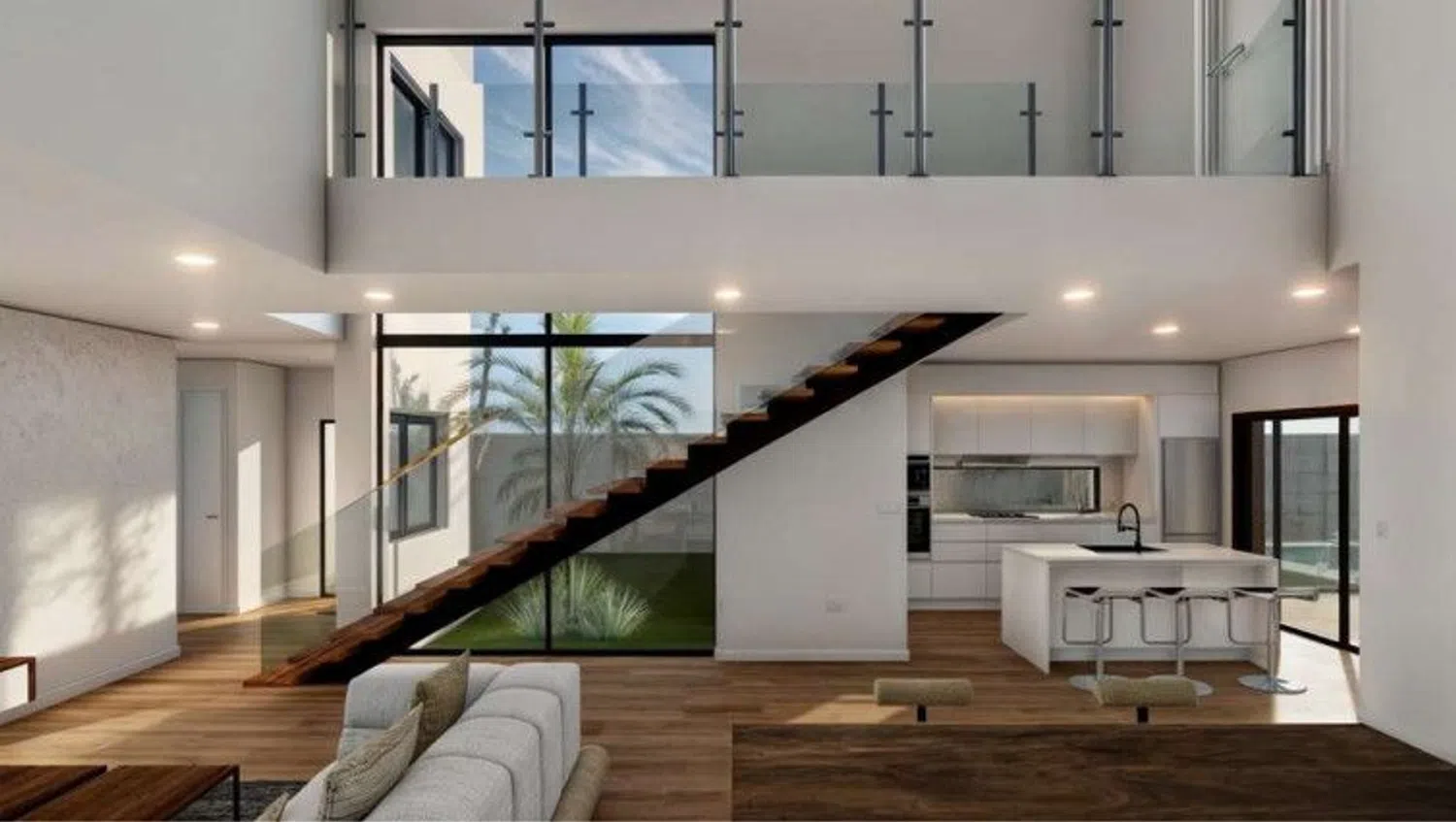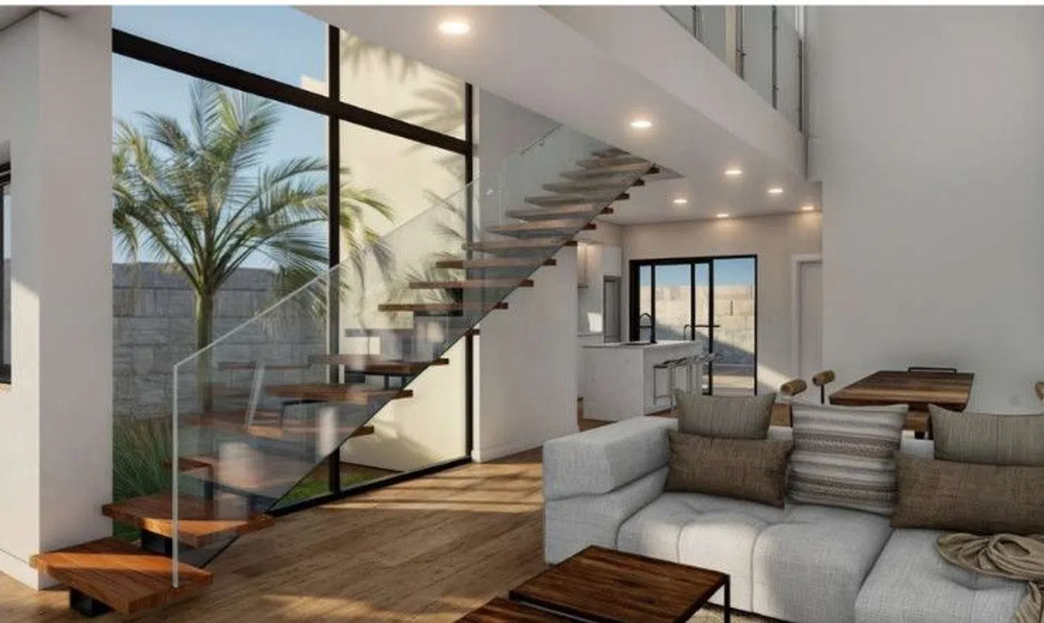 The first floor houses three bedrooms, highlighting the spectacular master suite with a walk-in closet, fully equipped private bathroom, and access to a panoramic terrace with a safety glass railing. The other two bedrooms, one with an impressive window, share a full bathroom, offering abundant light and comfort.