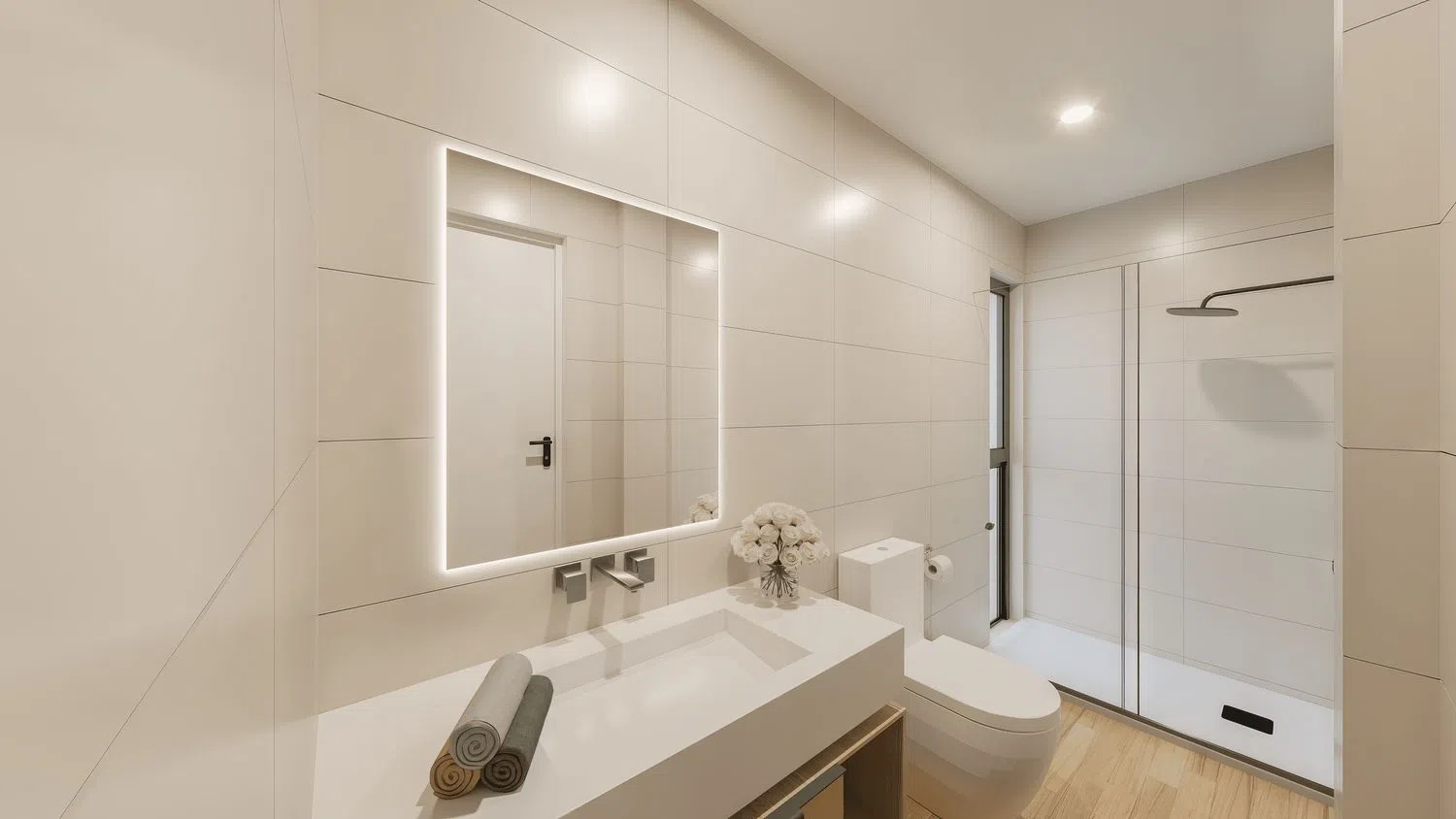 The homes are equipped with a high energy efficiency rating of A, alongside a sophisticated home automation system with a touchscreen control panel, managing entry, flood and fire detection, lighting, and motorized shades in the living room and bedrooms.