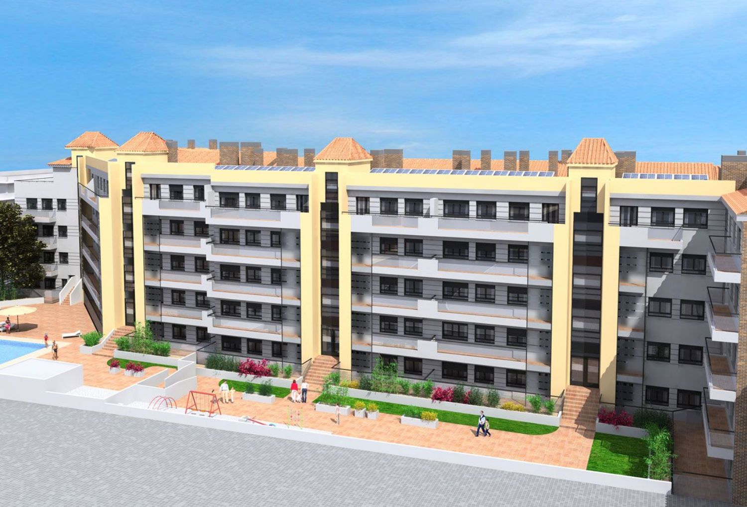 Un auténtico lujo en pleno centro de la ciudad. Se ha realizado una plaza ajardinada delantera para dar espacio y visibilidad a la edificación.Se trata de un edificio de Viviendas libres, de nueva construcción, en el mismo centro de Getafe, a un paso del Ayuntamiento, en la zona más comercial de la ciudad, con 86 viviendas de 2, 3 y 4 dormitorios y piscina, una dotación inigualable en el casco antiguo de Getafe, que se adaptará perfectamente a sus necesidades.El edificio tiene un diseño moderno y atractivo y las viviendas cuentan con acabados de calidad. Es un edificio con tres plantas de sótano, y seis plantas sobre rasante (Baja más cinco).La promoción consta de 5 portales y seis núcleos de escalera y ascensor para acceder a las viviendas.La zona está muy bien comunicada, en el mismo centro de Getafe con fáciles accesos y cuenta con estación de Metro a 500 metros y líneas de autobús.Consultar disponibilidad de trasteros y plazas de garaje.