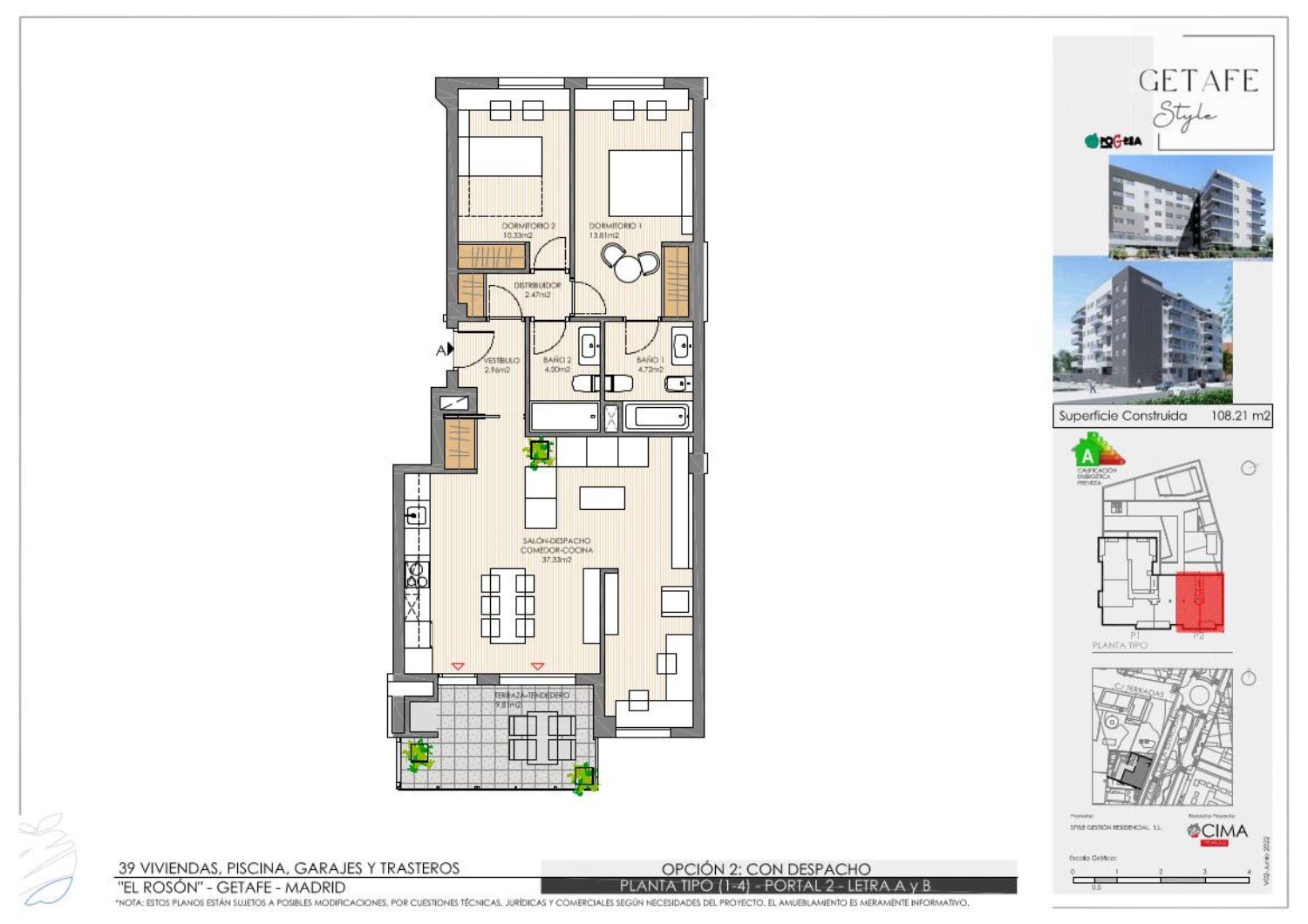 Amplíe información en el enlace adicional al final de esta página.Obras iniciadas.La promoción Getafe Style cuenta con 39 viviendas en altura en una moderna urbanización cerrada con piscina comunitaria, gastroteca, zona de coworking, outdoor gym, sala audiovisual, conserjería, aparcamiento para bicicletas y zonas ajardinadas.Getafe Style está ubicada en una zona inmejorable y muy céntrica, en el Paseo de la Estación en la zona de El Rosón. A sus alrededores cuenta con numerosos servicios como supermercados, colegios, centros de salud,.. . y es una zona muy bien comunicada ya que a 400 metros se encuentra la estación de Getafe Central, que cuenta con cercanías Renfe y Metrosur, además de numerosas líneas de autobuses que conectan con el resto del municipio y con Madrid a tan solo 10 km. y con comunicación directa por la A-42 y M-45.Las viviendas, de 2 y 3 dormitorios, han sido diseñadas cuidando los detalles y pensando en la versatilidad de los espacios. Por ello, existe la posibilidad de poder elegir entre diferentes opciones de distribución y entre diferentes acabados de alta calidad para poder definir el estilo de tu vivienda, ajustándolo a tus necesidades y a las de tu familia.Equipamiento:Urbanización cerrada.Piscina.Zonas ajardinadas.Gastroteca.Outdoor gym.Sala audiovisual.Zona de coworking.Conserjería.Aparcamiento para bicicletas.¡Solicite cita previa!