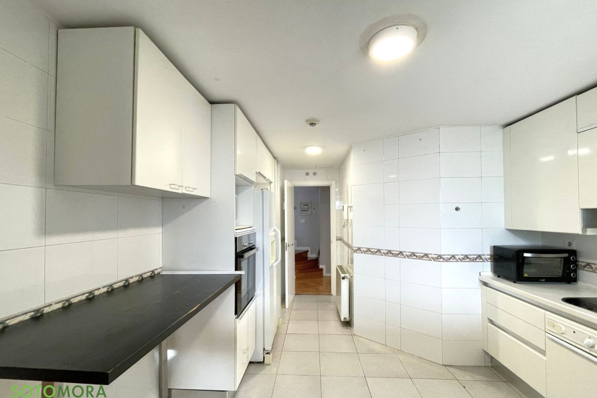 Sotomora Real Estate presenta en EXCLUSIVA fantástico ático-dúplex en una de las mejores zonas de El Encinar de los Reyes, próxima a zonas de ocio y restauración y colegios de la zona.La vivienda se distribuye de la siguiente manera:Nada más entrar, a la izquierda del recibidor, se encuentra la cocina completamente equipada y gran almacenaje. Por ella se accede a una pequeña zona de lavandería.Siguiendo por el pasillo se llega al salón-comedor, muy amplio y luminoso con salida a una terraza de 8 metros cuadrados.Esta planta la completan dos habitaciones, una de ellas con baño en suite, muy espaciosas y luminosas.La segunda planta la ocupa la habitación principal con zona abuhardillada, un precioso baño en suite y una magnífica terraza de 20 metros cuadrados.La vivienda se encuentra en una urbanización con amplias zonas verdes, piscina y zona infantil. Además incluye dos plazas de garaje y un trastero. No dudes en contactar con nosotros para visitarla.