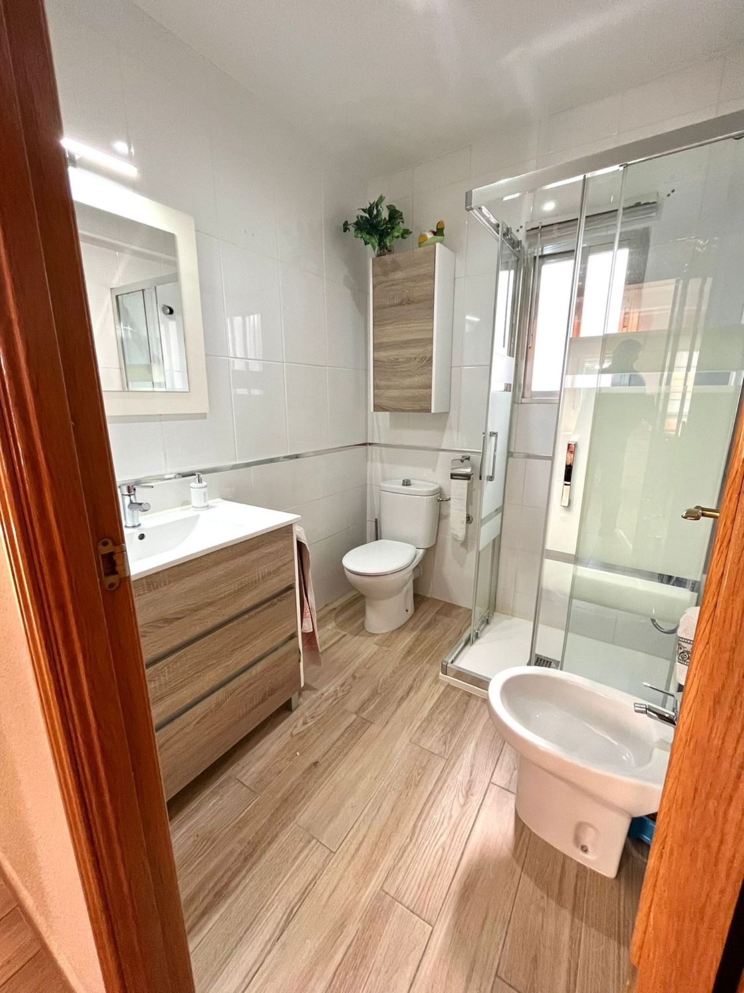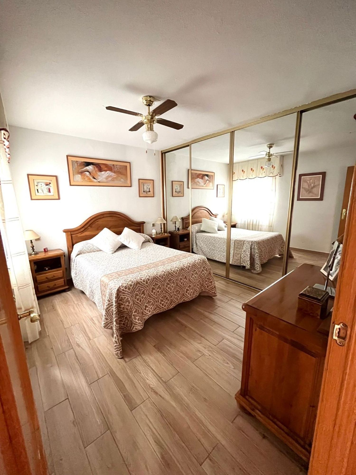Se vende vivienda totalmente REFORMADA, EXTERIOR, PRIMERA PLANTA. La vivienda consta de: Un salón muy amplio con muebles a medida y por el cual se accede a la terraza, que da al exterior y cuenta con un armario empotrado y toldo nuevo.Tres dormitorios muy amplios con muchísimo espacio en los tres, en ellos encontramos su armario empotrado correspondiente de pared a pared y además cada ventana (que da al exterior) tiene su correspondiente capota para el sol. El baño está recientemente reformado con plato de ducha, bidet, mueble de baño y WC, añadir que también es bastante amplio muebles macizos en color roble y también tiene su propia ventana. Es una vivienda muy luminosa.Tiene calefacción de gas natural en toda la casa y aire acondicionado recién puesto hace 6 meses (aún en garantía). Todas las ventanas son de climalit, de aluminio blanco con rotura de puente térmico. Las puertas de la casa son macizas en color roble.