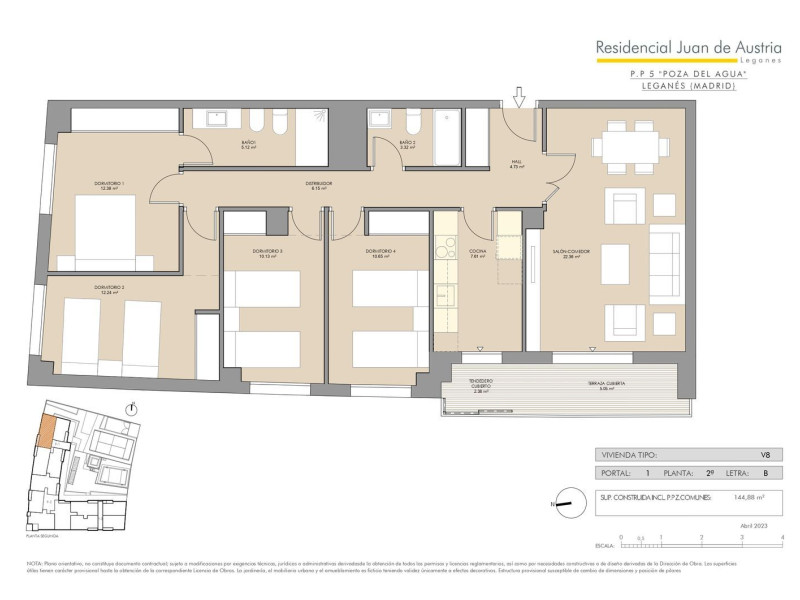 ¡Licencia de Obras concedida! Tu casa ideal en Leganés.“Residencial Juan de Austria” es una promoción de 61 viviendas de 2, 3 y 4 dormitorios, todas con terraza, en una de las zonas más modernas de Leganés.Proyecto residencial en urbanización cerrada con piscina, pádel, gimnasio, sala comunitaria y zonas ajardinadas.Plaza de garaje y trastero incluido en el precioUbicada en “Poza del Agua” una de las zonas más modernas de Leganés, cuenta con todo tipo de servicios, amplias zonas verdes en los alrededores como el Parque de Valdegrullas o el Parque Osa Menor el parque infantil más grande de Madrid, inaugurado recientemente y unas excelentes comunicaciones tanto de transporte público (Metro y autobús) como privado.El edificio tiene un diseño moderno y atractivo que contará con una alta eficiencia energética.El interior de las viviendas se caracteriza por sus amplias estancias y una excelente distribución.Las viviendas contaran con amplias opciones de personalización como es habitual en los proyectos de Libra.