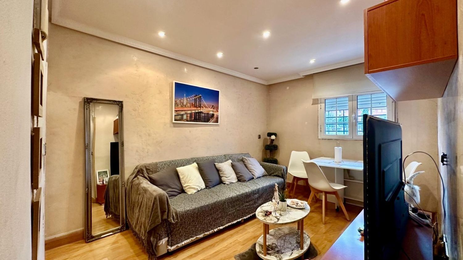 Vivienda en venta semiamueblada y reformada (Suelos de tarima flotante, puertas de roble, cocina amueblada con electrodomésticos (salvo lavadora) y baño con gran plato de ducha, radiador toallero y calefacción individual. Dispone de un patio de 10 m2 de uso privativo con trastero incluido en el mismo. Portal rehabilitado y con pocos peldaños de acceso. Vistas exteriores al parque y zona de fácil aparcamiento. Bien comunicada, junto a: Metrosur San Nicasio Líneas de Autobús: 450 (Getafe-Alcorcón), 482 (Madrid Aluche-Parque Polvoranca), 486 (Oporto-Valdepelayo) y 488 (San Nicasio-Getafe Norte) Próximo a Renfe Leganés Central.