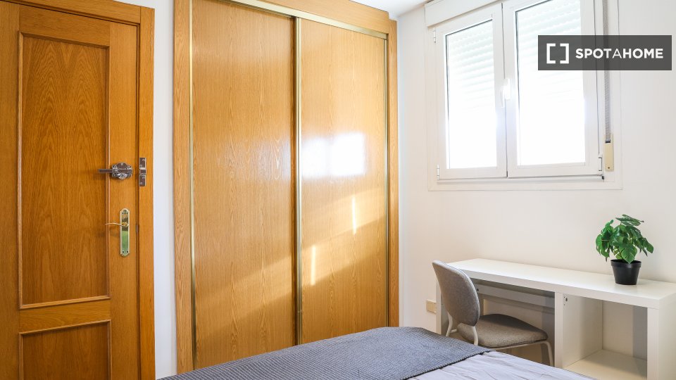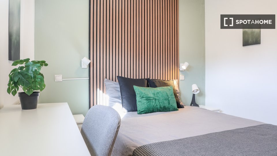 This is a charming room in a shared 4-bedroom apartment located in the vibrant area of Numancia, Madrid. Please note, this property has been visited and checked by Spotahome for added reliability, and all utilities include set limits. Shared apartment facilities include a fully equipped kitchen with an oven and a lovely shared balcony or terrace to enjoy the outdoor ambiance and fresh air.