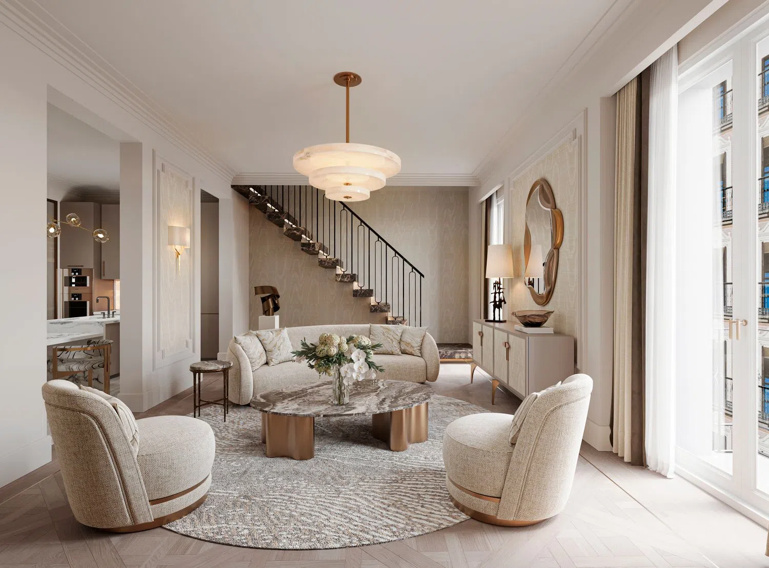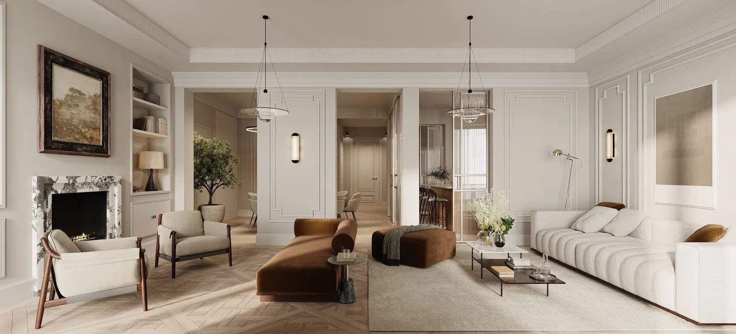 The comprehensive renovation of a 19th-century original will be undertaken to create 9 exclusive residences, with options ranging from 1 to 5 bedrooms and surfaces spanning from 105 m² to 420 m². Future residents will enjoy premium amenities including a wine cellar with a lounge-library, an indoor pool, a sauna, a yoga room, and a fully-equipped gym. Moreover, the central courtyard will be lush with greenery, providing a serene and comfortable escape in the heart of the city.
