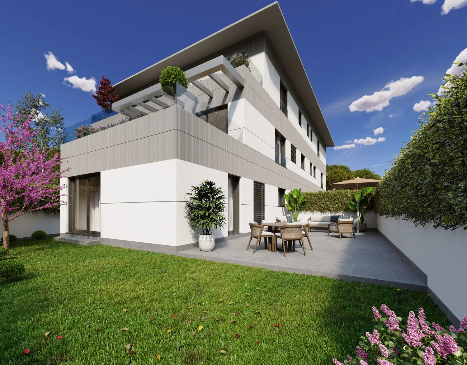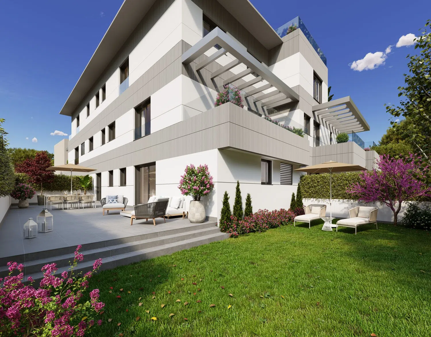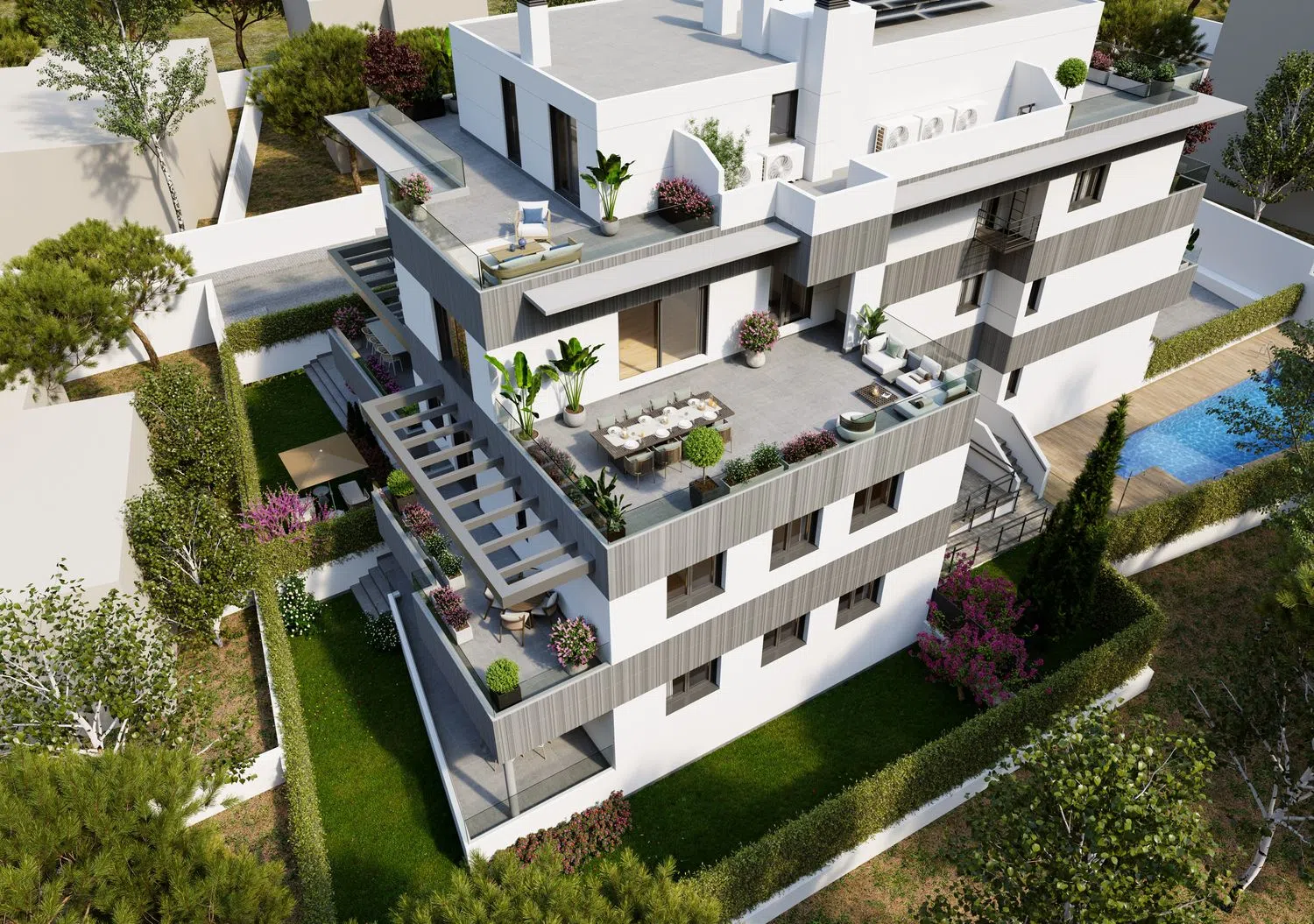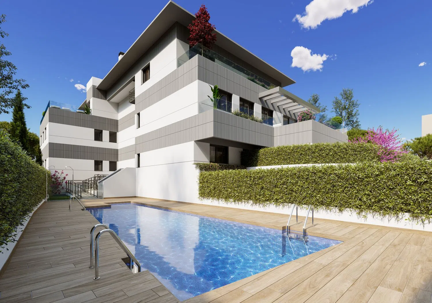 LICENCIA DE OBRA INMINENTE. INICIO DE OBRAS ESTIMADO FEBRERO 2025. DEMOLICIÓN FINALIZADA Obra nueva Residencial Pasaje del Sur, pisos de 3 habitaciones, amplios jardines y terrazas, piscina comunitaria. Residencial Pasaje del Sur es un exclusivo edificio de obra nueva que consta de 9 viviendas, con varias tipologías: - Bajos de 3 habitaciones, 2 baños y amplios jardines de uso privativo desde 85 hasta 120 metros cuadrados. - Primeros de 3 habitaciones, 2 baños y amplias terrazas. - Segundo de 3 habitaciones, 2 baños y una terraza de grandes dimensiones. - Áticos (dúplex, en planta segunda y ático) de 3 habitaciones, 2 baños, aseo de cortesía y terrazas con vistas panorámicas. Cada una de las viviendas incluye una plaza de garaje y un trastero, con posibilidad de adquirir una segunda plaza. Las zonas comunes incluyen una sala comunitaria y una piscina exterior. La promoción tiene un cuidado diseño que combina estética, alta calidad de materiales y funcionalidad con domótica integrada, y un sistema constructivo que posibilita un aprovechamiento óptimo del espacio en todas las estancias. La climatización de las viviendas será mediante sistema de aerotermia frío-calor que se distribuye por suelo radiante. Las viviendas cuentan con la máxima certificación energética, siendo “A” en proyecto. El proyecto contempla la ampliación de Pasaje del Sur, que pasará a comunicar la calle Guía con la calle Fuente de la Salud, según prevé el PGOU de Pozuelo de Alarcón. La promoción tiene una localización privilegiada, se ubica en una calle muy tranquila en un entorno totalmente consolidado, a escasos 2 minutos andando del Parque Fuente de la Salud y de Camino de las Huertas. Cuenta con gran oferta de servicios a los que acceder andando, como centros educativos (Kensington School, Liceo Sorolla, Escuelas Pías San Fernando, San José de Cluny), supermercados, tiendas, restaurantes, zonas verdes, centro comercial El Torreón, etc. Las viviendas están muy bien comunicadas, con fácil acceso a la A-6, M-40, M-515 y M-503.