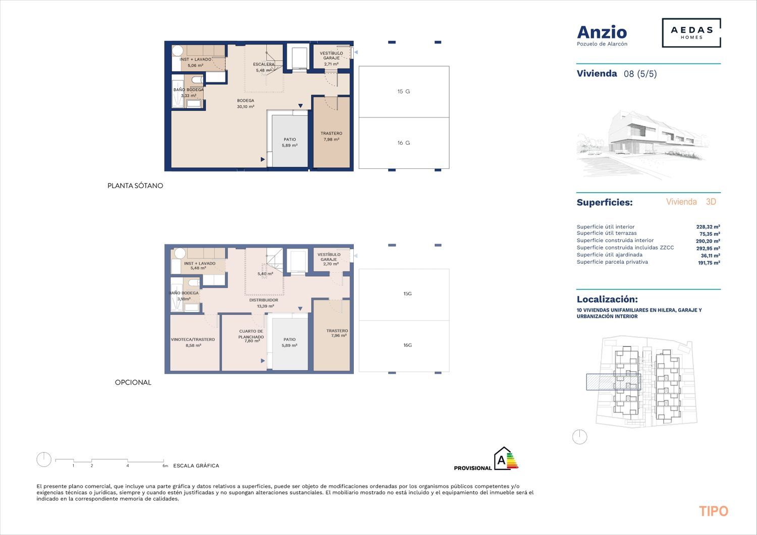"Obras Iniciadas"Urbanización de 10 viviendas unifamiliares exclusivas de 3 y 4 dormitorios, con jardín privativo y piscina individual. Cada vivienda tiene dos plazas de garaje en sótano comunitario a las que se accede a través de rampa comunitaria. Amplia flexibilidad de los espacios interiores, con posibilidad de ampliar el número de dormitorios. Las viviendas cuentan con un patio inglés central que aporta mucha luminosidad y diseño, así como ascensor, y en el bajo rasante disponen de bodega, baño, sala multiusos, y trastero.A las viviendas se accederá por una entrada principal peatonal a la urbanización que tendrá garita de vigilancia.Situada en en la colonia Las Minas, de Pozuelo de Alarcón. Se trata de un área residencial consolidada en uno de los municipios más demandados.Todos los servicios al alcance (colegios, supermercados, excelentes comunicaciones.. . ).