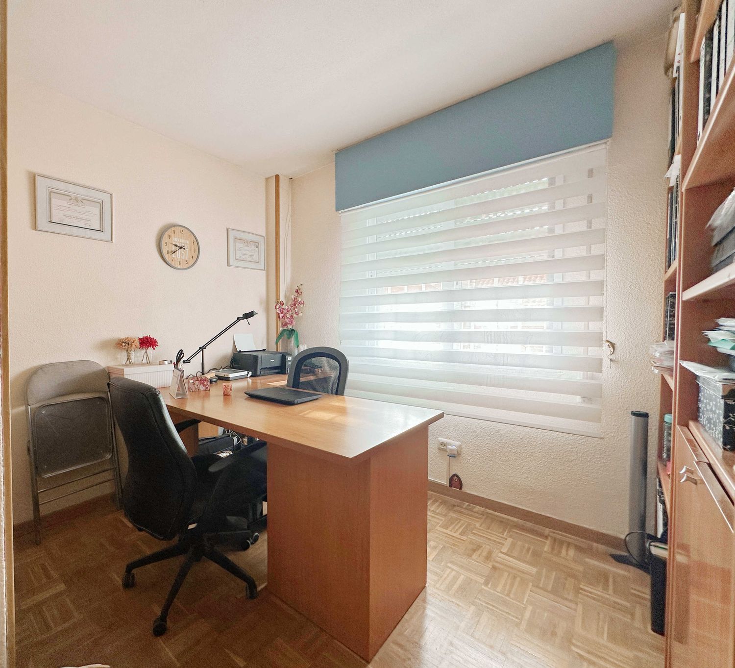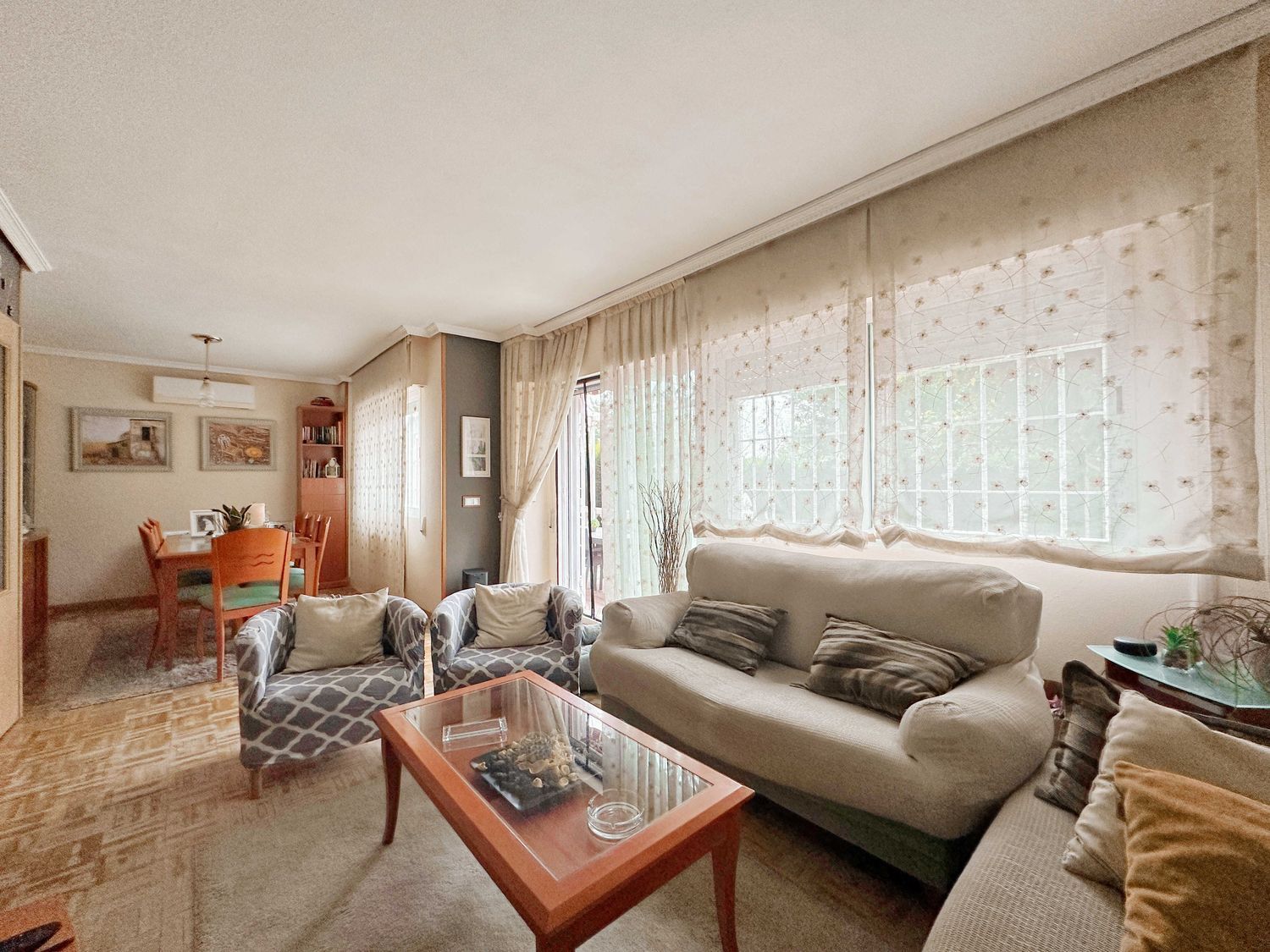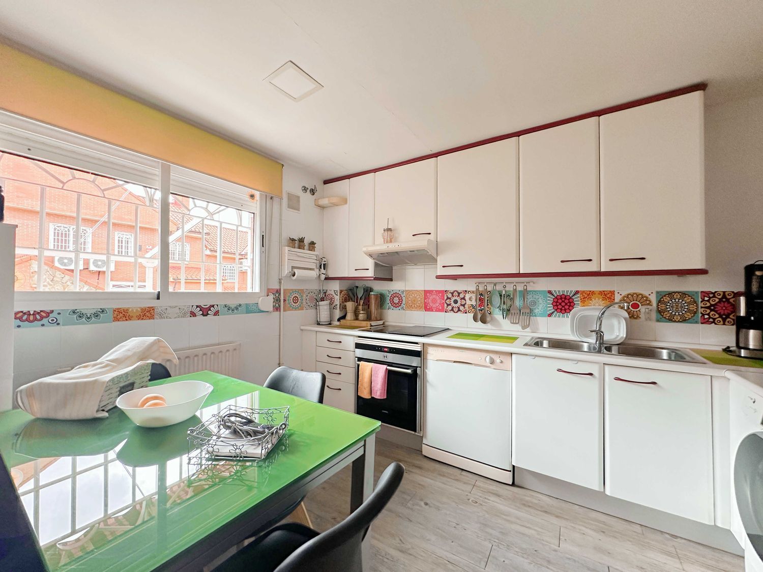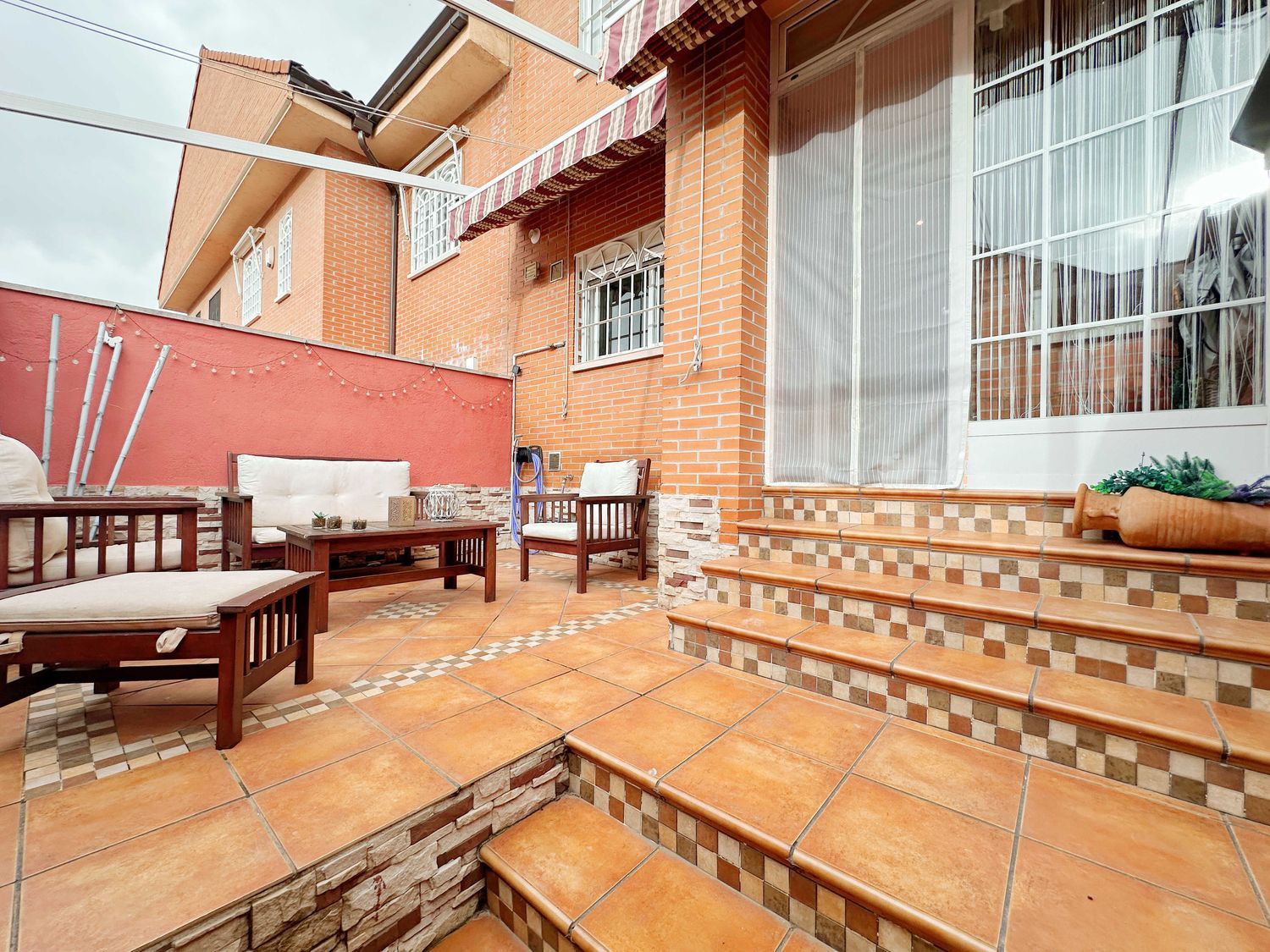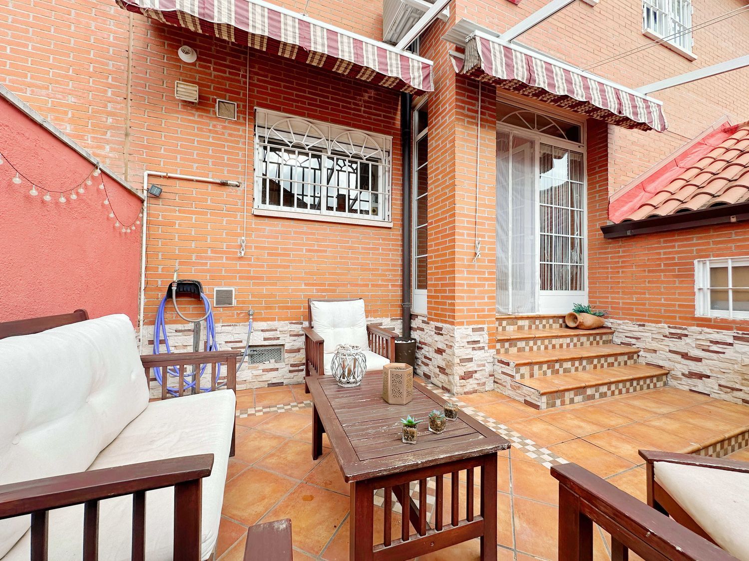 Estupendo chalet adosado de 200 m2 en urbanización cerrada con unas zonas comunes increíbles: piscina, parque infantil, pista polivalente deportiva, jardines y grandes zonas por donde pasear o que jueguen los más pequeños.Zona joven y tranquila de Rivas con varios colegios, instituto, 2 centros comerciales, nuevo polideportivo y próxima construcción del nuevo centro de especialidades.La vivienda nos recibe con una zona delantera muy acogedora con pérgola con toldo.En planta baja desde un amplio hall accedemos al salón comedor con salida directa a una terraza enorme con pérgola y toldo, con un cuidado jardín en el que es protagonista una cómoda barbacoa. Cocina muy luminosa. Aseo exterior. La disposición de la cocina es ideal para quienes busquen espacios abiertos y deseen poder comunicar cocina y salón al no tener en medio la escalera.Subiendo a primera planta encontramos cuatro habitaciones siendo dos dobles. La principal en suite. Todas con armarios empotrados Otro baño completo más con bañera. Ambos baños con mamparas.Planta buhardilla con 3 velux, en forma de T, lo que le da un aspecto muy bonito y original y facilita mucho la creación de espacios independientes. Actualmente tiene creadas 2 zonas dormitorio y un gimnasio. Muchos armarios y maleteros en los laterales. Aire Acondicionado.A tener en cuenta: - Jardín cuidadísimo.- Baños exteriores.- Aire Acondicionado.- Caldera nueva y en garantía.- Orientación perfecta.- Zonas comunes enormes.- Ventanas climalit. - Suelos de parqué y gres. - Rejas lacadas en blanco.- Riego y luz exterior. - Salida privada directa a zonas comunes.Financiamos hasta el 100% de la compra, consulta condiciones.Recuerda, si lo que buscas es transparencia y profesionalidad, no dudes en contactar con nosotros.