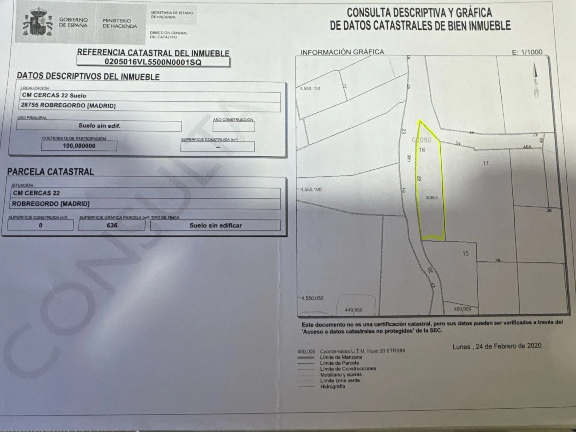 Land for €1000 Madrid