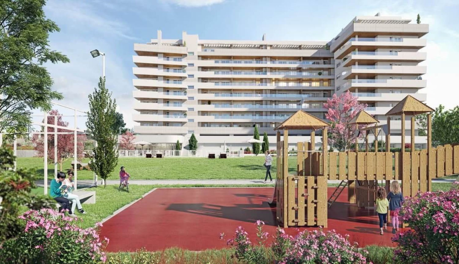 FCC Real Estate promueve pisos de obra nueva de 2, 3 y 4 dormitorios, bajos con jardín y áticos en la localidad madrileña de Tres Cantos. es un conjunto residencial ubicado en la zona de Nuevo Tres Cantos. Disponen de 2 plazas de parking y trastero incluidos. En el interior de nuestros pisos nuevos en Tres Cantos, destaca la amplitud y óptima distribución de sus estancias. Todos los pisos disponen de amplias terrazas desde las que disfrutar de vistas espectaculares al aire libre. Las zonas comunes disponen de piscina infinity de depuración salina, pádel, y área de juegos infantiles para el ocio de los más pequeños.