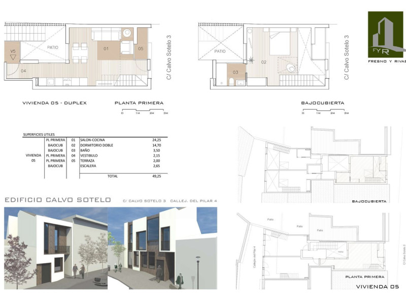Esta promoción de 5 viviendas está constituida por dos bajos y tres dúplex.Gestiona, construye y promueve FRESNO Y RIVAS, S. L. con CIF B85107084, el cual cuenta con una larga trayectoria profesional que avala su competencia en la gestión de proyectos inmobiliarios.El proyecto ha sido realizado por el arquitecto D. Héctor Ferrer Lasheras.