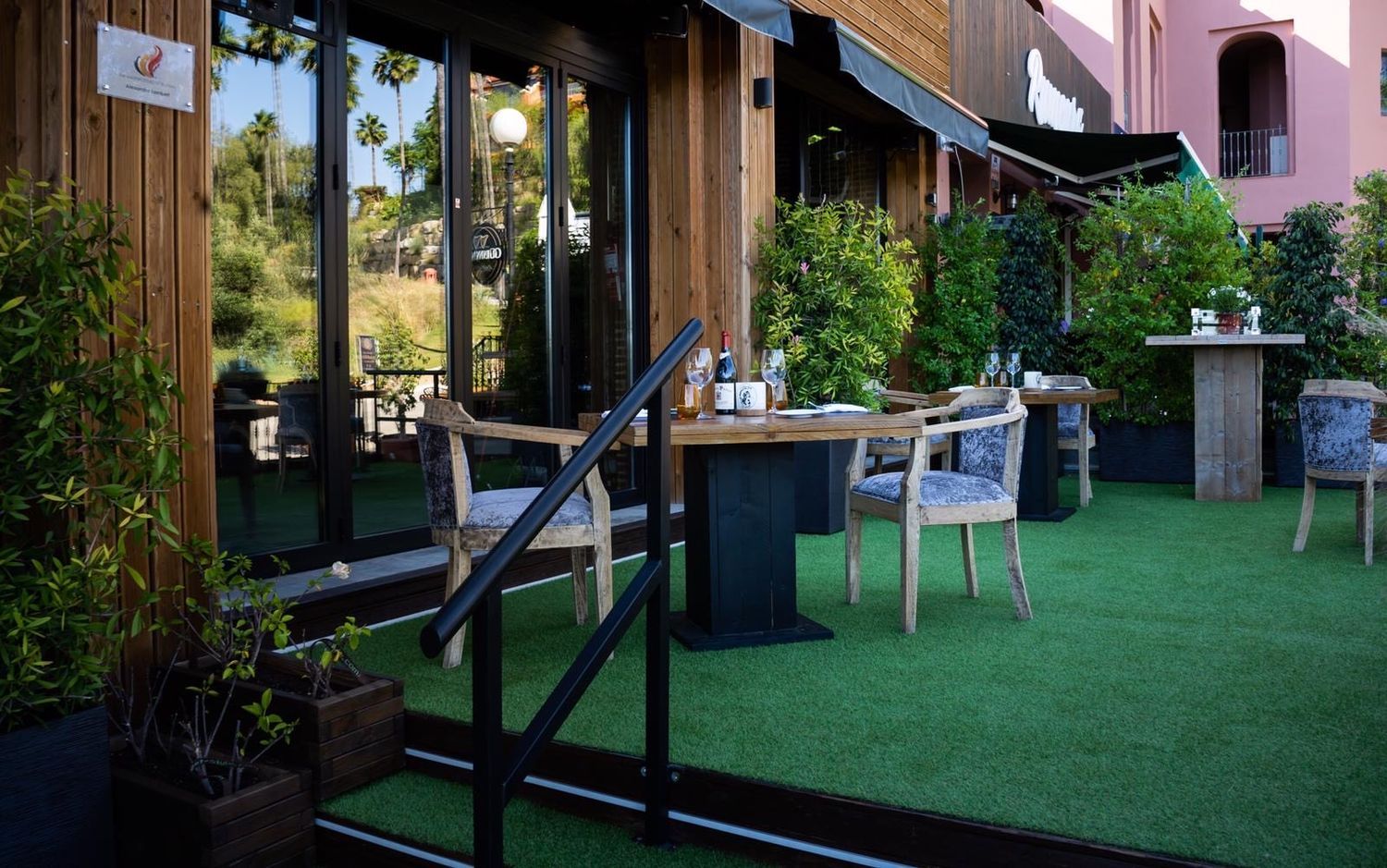 El restaurante está ubicado en el centro comercial “Los Halcones”, en línea con otros restaurantes de este centro entre las urbanizaciones de lujo Los Arqueros, La Quinta y Zagaleta.Tiene su propia terraza espaciosa y un interior de dos niveles (parte de bar y parte de restaurante), amueblado en un estilo acogedor de un establecimiento gastronómico.El local está totalmente equipado y amueblado, se instala un costoso sistema de audio y un sistema de iluminación para eventos nocturnos.Dispone de montaje de DJ y de un espacio para la organización de eventos de animación y música.Hay dos baños y una cocina totalmente equipada, lista para trabajar. El número máximo de comensales que acepta el restaurante es de 130 personas.Es posible alquilar almacenamiento de gran capacidad en el sótano del centro comercial.