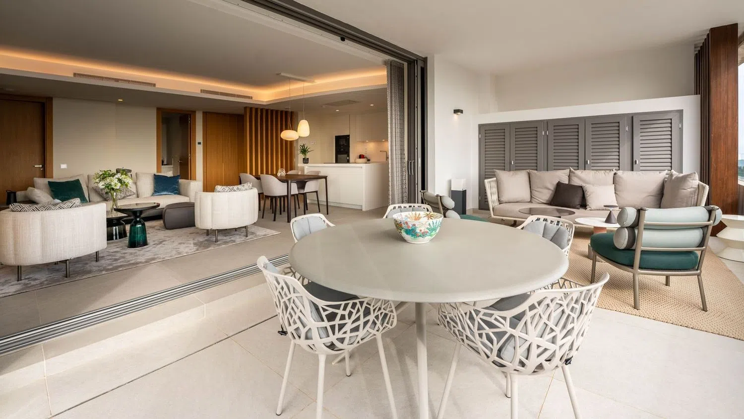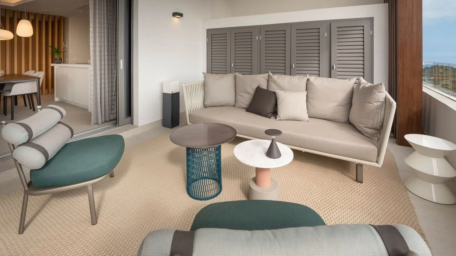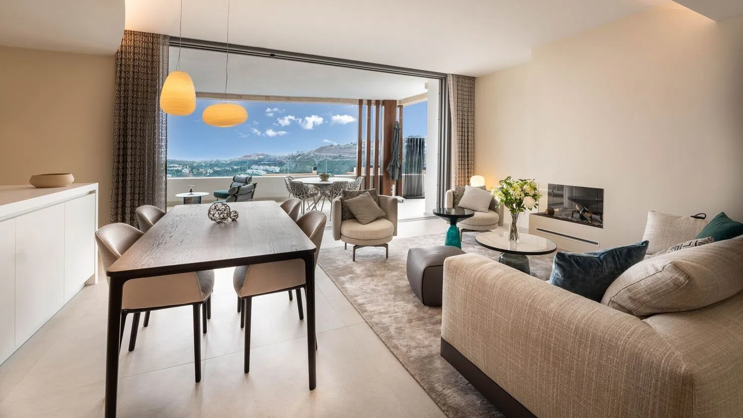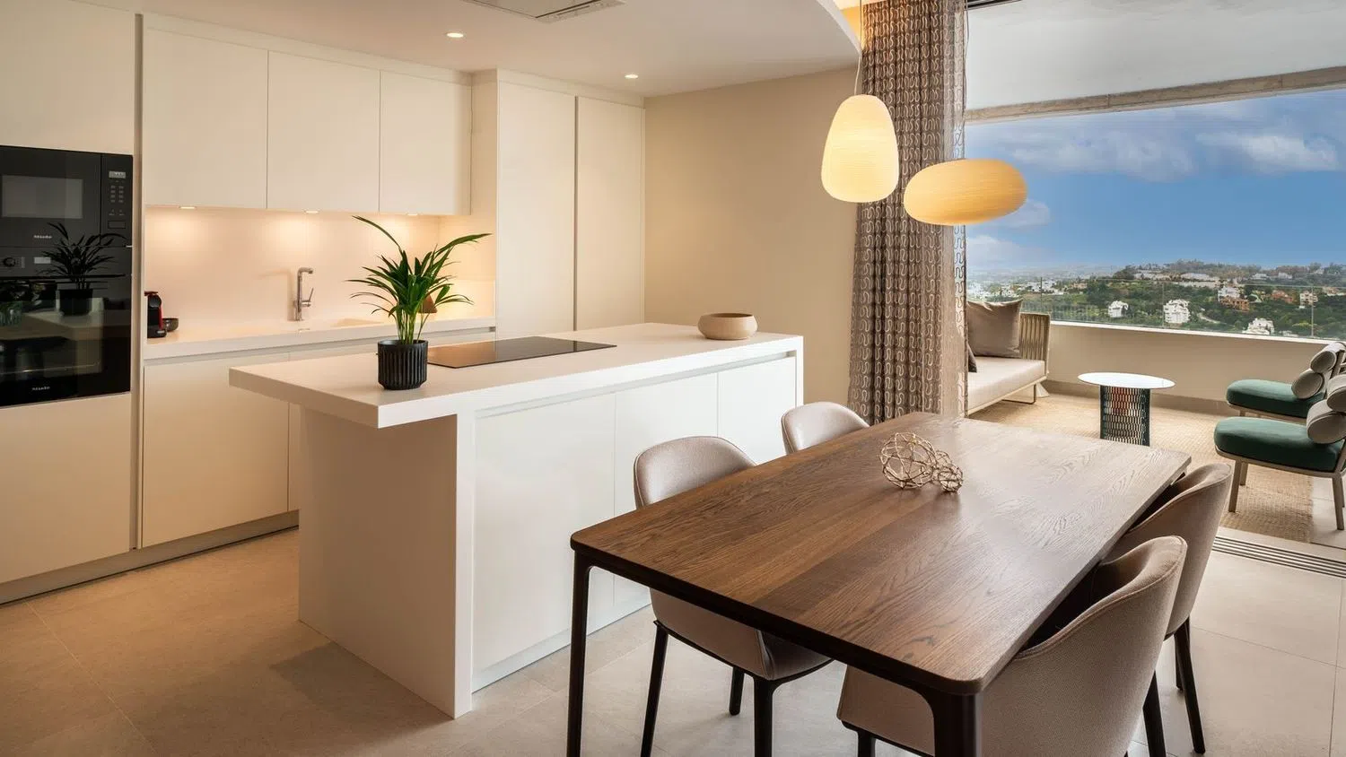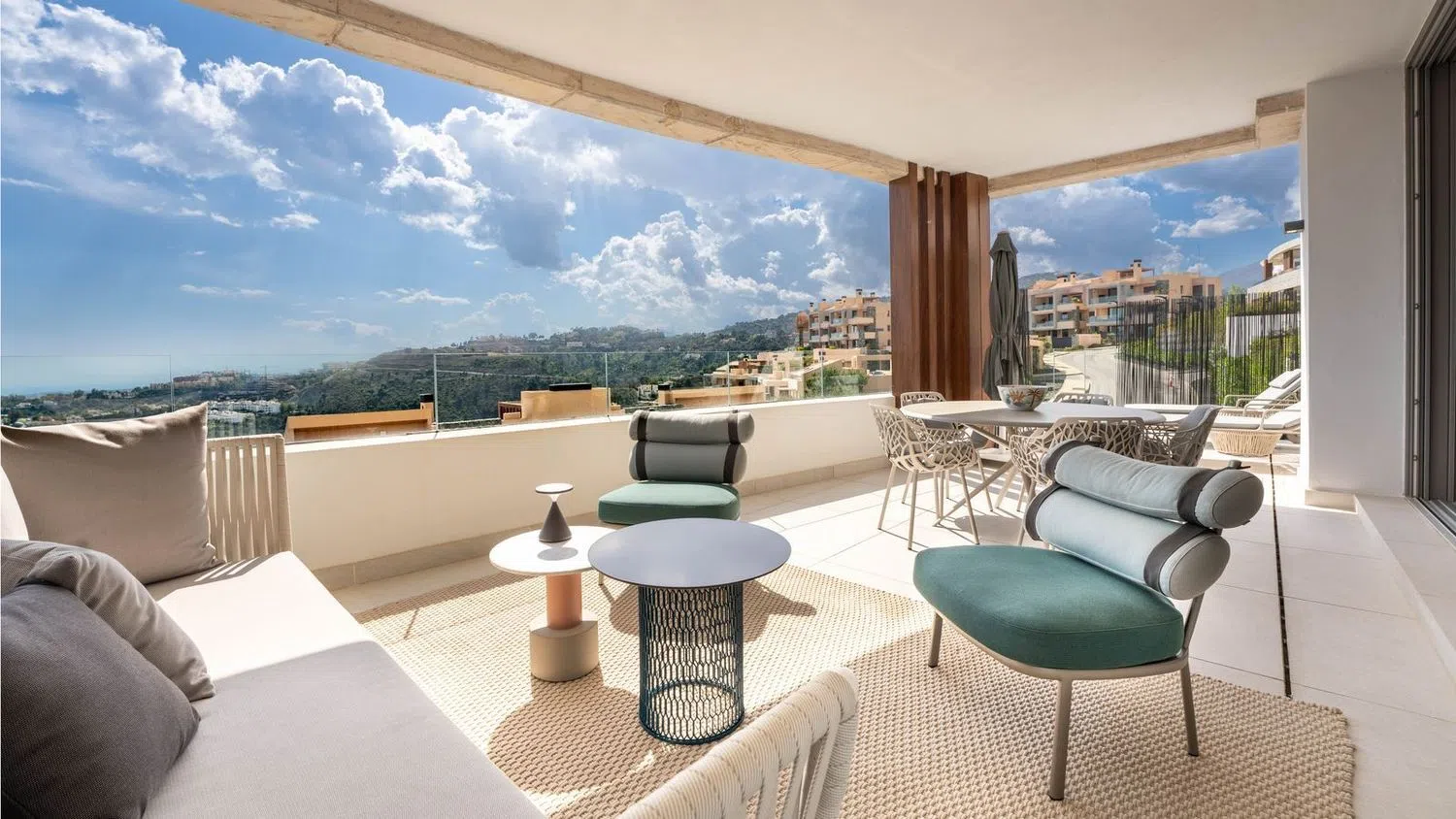 El dormitorio principal y el baño en suite, ambos acabados en una paleta de colores relajantes, tienen una acogedora terraza privada. Hay un amplio espacio de almacenamiento con discretos armarios empotrados. El dormitorio de invitados y el baño de invitados, situados a lo largo del pasillo, son una buena adición a la conveniente distribución de este apartamento. Los acabados utilizados tanto para el interior como para el exterior incluyen materiales naturales como la piedra y la madera. Estos materiales se integran en un contexto moderno donde el cemento, el vidrio y las tecnologías del siglo XXI se combinan a la perfección con el diseño de los edificios y el paisaje. Está completamente amueblado con muebles y accesorios de alta gama. El apartamento cuenta con características modernas, como un sistema de domótica inteligente, aire acondicionado, calefacción por suelo radiante en todas partes y persianas automáticas. El apartamento viene con dos plazas de aparcamiento subterráneo y un trastero independiente. Real de La Quinta es el primer proyecto de desarrollo urbano en España certificado por BREEAM, la organización más grande del mundo para la evaluación y certificación de la sostenibilidad en la construcción. Su diseño contemporáneo abraza el entorno natural y aprovecha al máximo la privilegiada posición en la ladera para ofrecer excelentes vistas a las verdes colinas de la Sierra de Las Nieves, la emblemática montaña de La Concha y el mar Mediterráneo. Las zonas comunes incluyen una piscina bien cuidada con impresionantes vistas panorámicas al mar, una piscina más pequeña para niños y amplios caminos adornados con vegetación típica andaluza. La entrada a la urbanización cuenta con control de seguridad 24 horas al día, 7 días a la semana, para la tranquilidad de todos los residentes. Si desea más información sobre el moderno apartamento con vistas panorámicas al mar en Benahavís, los planos de planta o concertar una visita personal, no dude en ponerse en contacto con nosotros.
