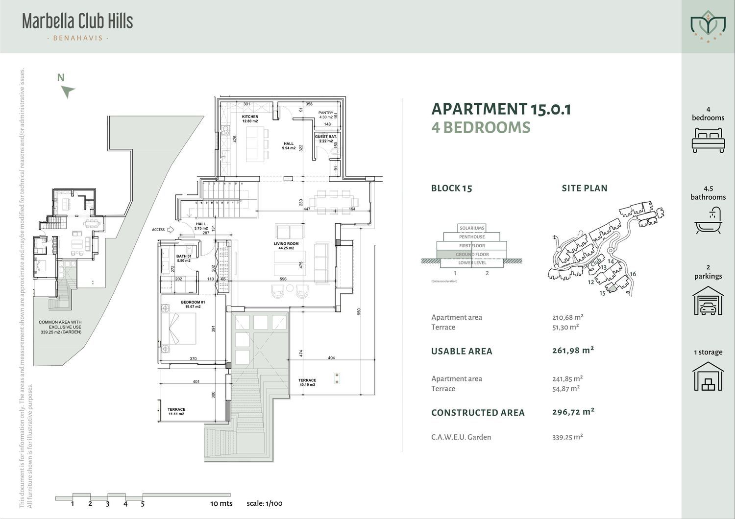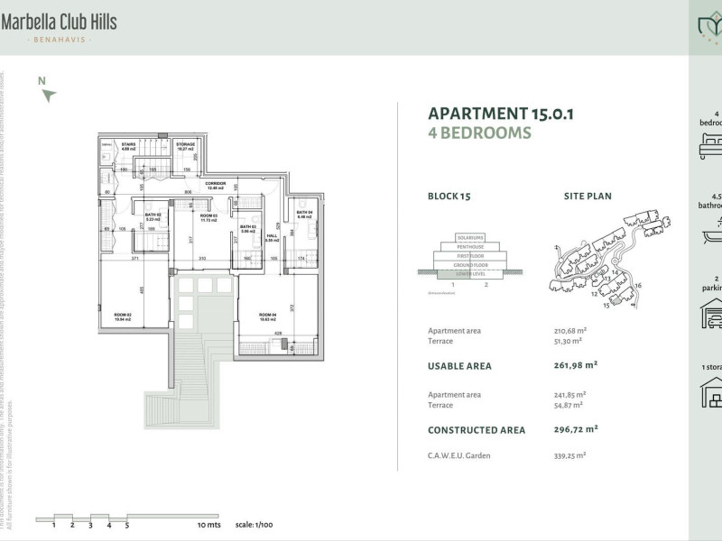 La urbanización Marbella Club Hills está ubicada en el Municipio de Benahavís, específicamente a dos pasos del Marbella Club Golf Resort y el icónico hotel Anantara Villa Padierna.A tan solo 15 minutos de Puerto Banús, y a 20 de Marbella centro, esta comunidad privada ofrece un estilo de vida tranquilo, rodeado de naturaleza, privacidad y deportes de exterior. El proyecto incluye 110 apartamentos y 10 villas, distribuidos en 4 fases. Ofrece maravillosas vistas panorámicas al Golf, Gibraltar y el Atlas africano. El complejo está diseñado por el reconocido estudio de arquitectura Villarroel-Torrico, con un diseño que combina modernidad, estilo clásico y un toque andaluz. La fase I del proyecto, que consta de 50 apartamentos está vendida. La fase II se acaba de lanzar, un total de 30 apartamentos- 6 bloques con 5 apartamentos por bloque. *6 áticos, de 3 y 4 dormitorios, precios desde €970,000 a €1,350, 000Espectaculares terrazas y solarium abiertos a vistas panorámicas al mar y la montaña. ✶ 12 apartamentos de primera planta, de 2 y 3 dormitorios, precios desde €620,000 hasta €725,000Grandes terrazas, amplios salones con cocinas integradas y además con jardines traseros que ofrecen un espacio exterior en un apartamento de media planta. ✶ 12 apartamentos duplex con jardin, de 3 y 4 dormitorios, precios desde €835,000 hasta €1,015, 000Bajos con jardín distribuidos en dos plantas de hasta 240m2 interiores. Espaciosas propiedades con jardín frontal de uso privativo. Cada apartamento incluye dos plazas de garaje y un trastero. La construcción de la fase II está planificada para comenzar durante el último trimestre de 2024. Precios especiales de lanzamiento hasta final de Octubre de 2023. La urbanización cuenta actualmente con un club deportivo, que consta de una piscina exterior climatizada, sauna y hammam. Además de un club social equipado con kitchenette. El segundo club deportivo se construirá junto con la fase II, y constará de una piscina interior, pistas de paddle, tenis y pickle ball. Marbella Club Golf.Además los propietarios tienen la posibilidad de activar su membresía (sujeto al pago de las cuotas anuales por socio) del prestigioso Club de Golf de Marbella Club, un campo de 18 hoyos meticulosamente diseñado y mantenido. Contamos también con el Centro Hípico de Marbella Club, de acceso exclusivo para propietarios de la macro comunidad y huéspedes del hotel Marbella Club.