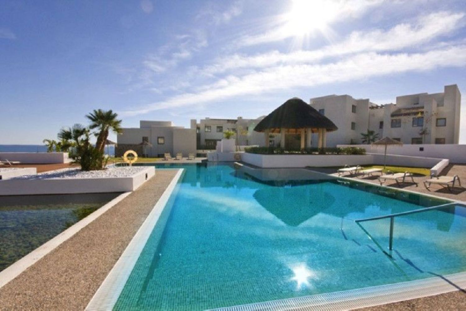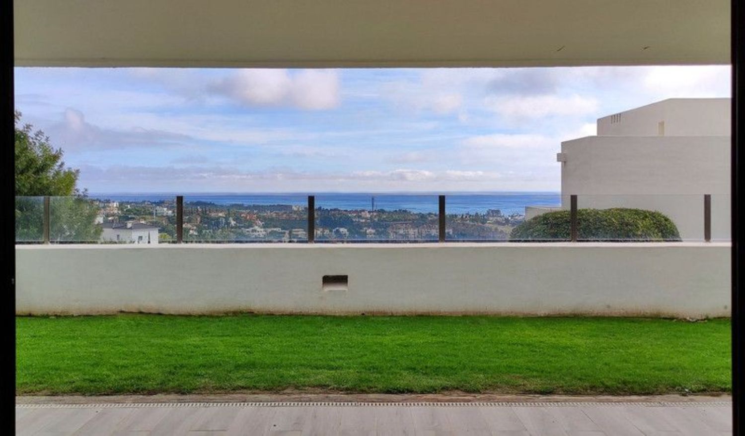 This fantastic southeast facing apartment is bright and spacious, with an open floor plan that allows for spectacular views from almost every corner. The ample dining room / living room features a cozy wood burning fireplace and huge sliding doors that lead to the large backyard. The kitchen is separated from the living area by a fantastic peninsula with a large breakfast bar. The large window across from the peninsula lets in a lot of natural light. It is fully equipped with high-quality Smeg appliances (including a washer/dryer), and plenty of cabinets. The refrigerator has been integrated to match the rest of the cabinetry. The condo comes elegantly furnished. Near the entrance hallway we find a nice powder room, perfect for guest use. The two bedrooms come with their own en-suite bathroom. The master bathroom is large, has a fabulous jacuzzi tub, double sinks, and a bidet. The bathroom adjacent to the second bedroom has a large walk-in shower, double sinks and a large window that bathes it with tons of natural light. Both en-suite bathrooms come with underfloor heating. The fabulous backyard can be accessed from the living-room area, as well as the two bedrooms. It has a wonderful covered porch with a recently installed deck, perfect for gatherings and barbecues. The rest of the yard has a L-shape lawn that wraps around the house and gives the condo the feeling of a stand alone house. Given that it is the only apartment on that level, the serene and quiet surroundings, and the privacy this home enjoys, it is easy to get that stand alone villa vibe. The views of the Mediterranean are just stunning. It is in an established location, so there is no risk those views will ever be obstructed by new construction. The luxurious communities around the area can also be discerned from the height of the veranda, with their impeccable landscaping and delightful Los Flamingos golf course. The condo has central air and heating throughout the space, high-quality finishings on baseboards, solid wooden doors, expensive ceramic tiling on all flooring and beautiful tiles in every bathroom. It has also been recently given a fresh coat of paint. The parking space that belong to this condo is located in an underground garage that can be accessed by semi-private lift. An optional 2nd, 3rd, and or 4th garaje space is available if required. It also comes with a storage room with sturdy shelving units. This condo is part of a gated community in one of the most exclusive areas on the coast. There are two beautiful swimming pools, a gorgeous water fountain and impeccably maintained grounds. The community also has security cameras throughout the property and a security guard that patrols the area outside the community, including the luxurious Villa Padierna Hotel.