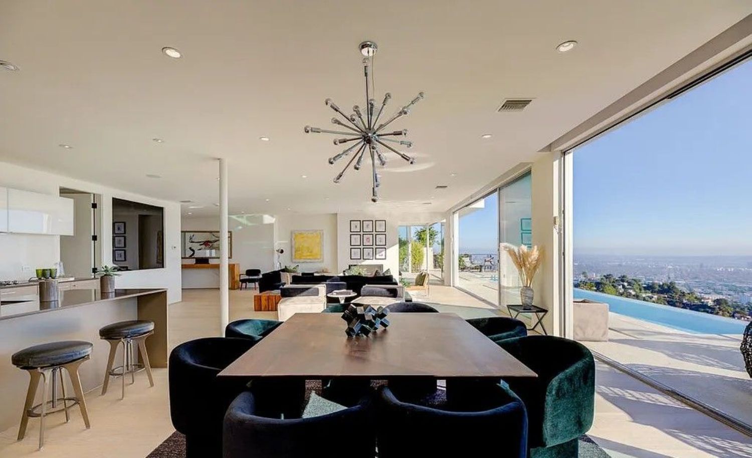 Welcome to "SORAYA," an architecturally marvelous single-level home exceptionally renovated with possibly the most beautiful views in Marbella. As you pass by a water fountain, you are greeted by stunning city, mountain, and ocean views, all within the frame of Fleetwood floor-to-ceiling glass doors. Embrace the minimalism and open floor plan offered by this home with features like a chef's kitchen with Miele, Sub Zero, and Wolf appliances, fireplace, surround sound, and a jaw-dropping infinity pool, all with breathtaking views. Stroll to your master suite with spa-like bathroom, radiant floors, double vanity, walk-in closet, and Fleetwood sliding doors leading you to the pool and spa in just a few steps. Truly an architectural masterpiece and the epitome of living in Marbella.